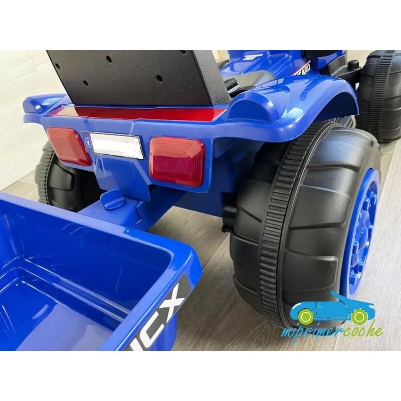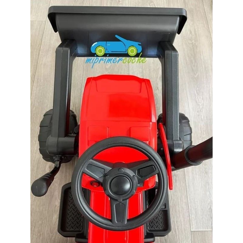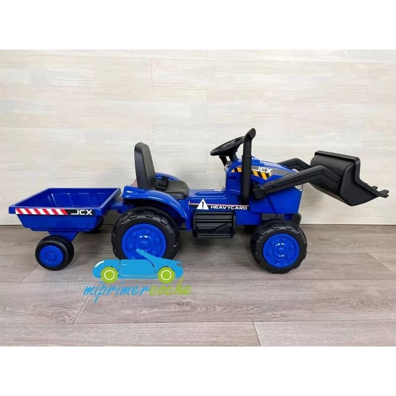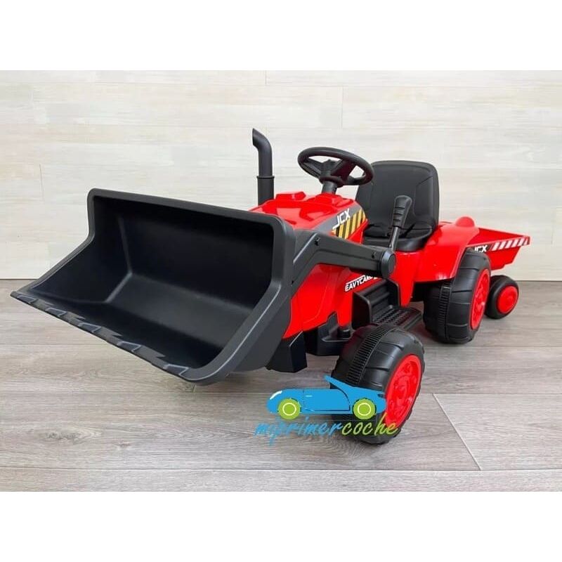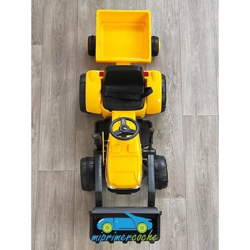 Este tractor eléctrico infantil viene totalmente equipado , con mando parental 2.4G ,asiento en plástico e incluye su propio remolque para transportar la carga .La pala delantera del tractor es completamente funcional, permitiendo a los niños cargar y descargar objetos, lo que fomenta el juego activo y creativo.