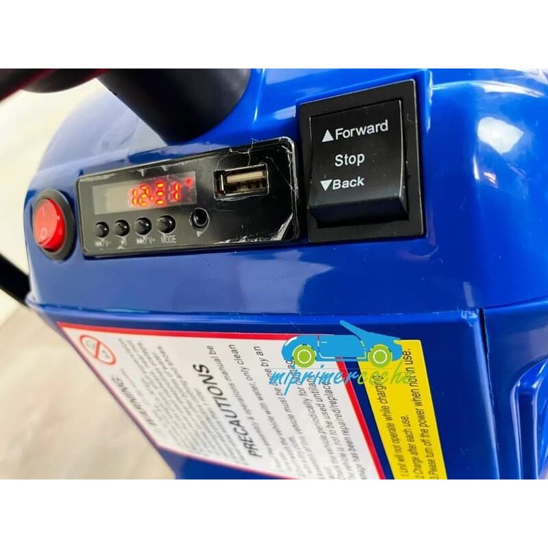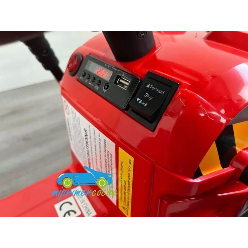 - el tractor puede ser controlado por el padre gracias al mando distancia 2.4G con funciones de marcha hacia delante / atrás , girar izquierda / derecha , selector de velocidades y botón de paro de emergencia .
