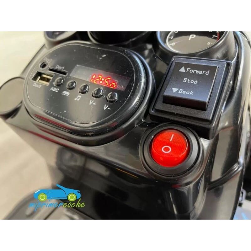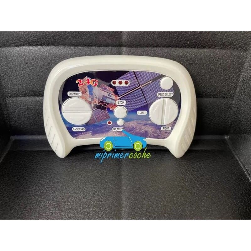 · mando parental 2.4G · control remoto inteligente 2.4G con selector de velocidades ( 3 velocidades ) cuatro canales ( adelante , atrás , derecha e izquierda ) y botón de paro de emergencia exclusivo para el control parental con un radio de acción de unos 30 m