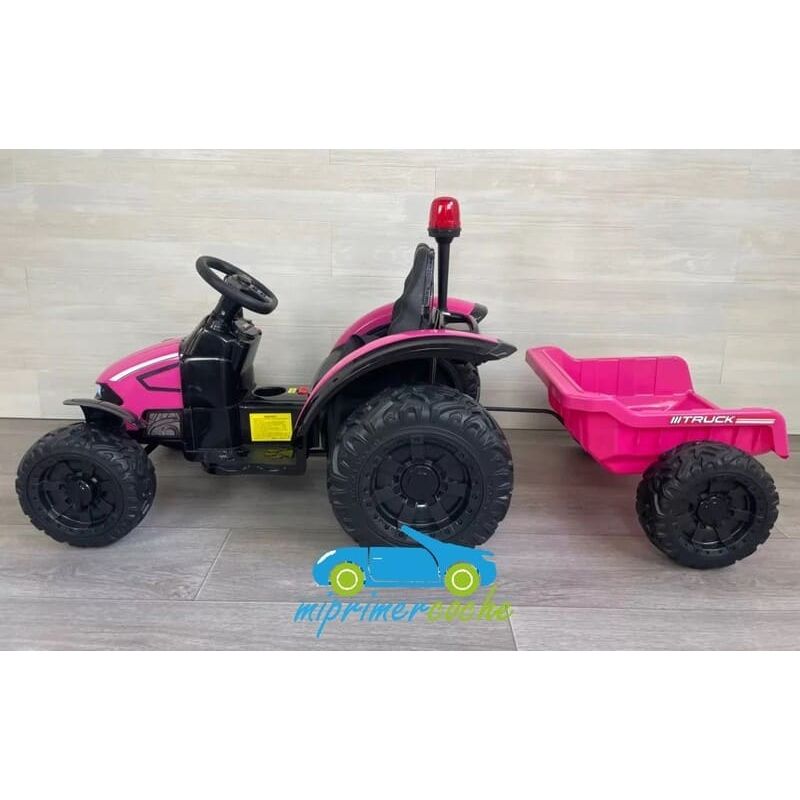 Tractor eléctrico infantil Mi Primer Coche con mando distancia 2.4G, ruedas de caucho , equipo completo de música , 2 motores , remolque .