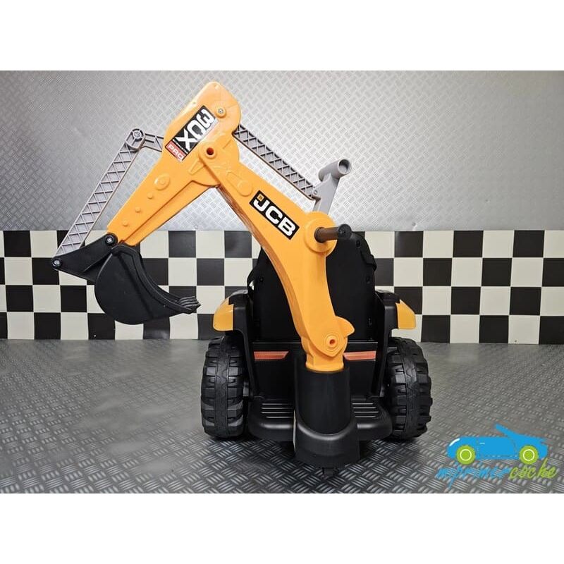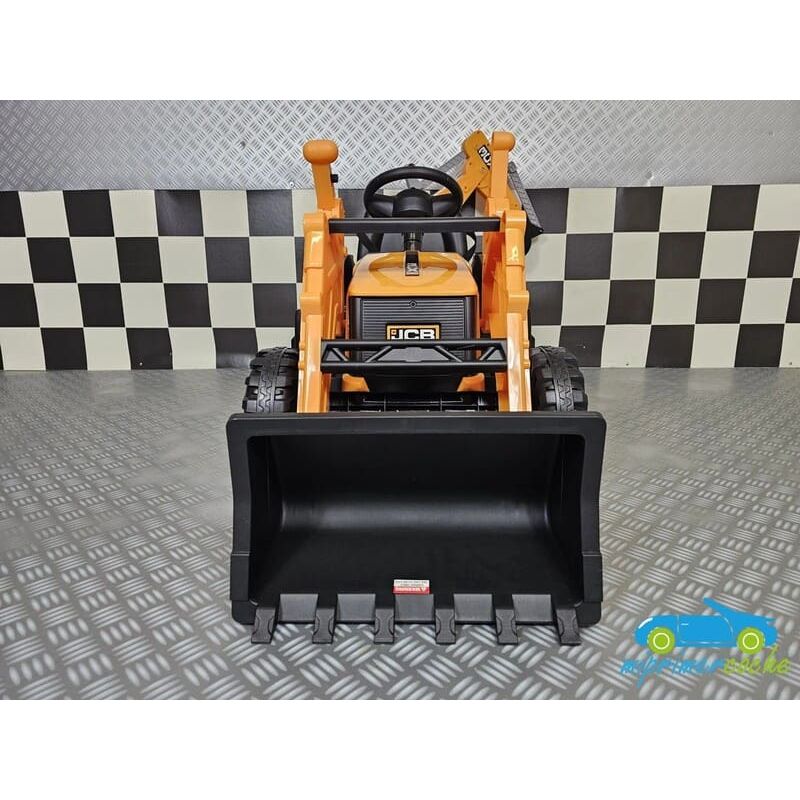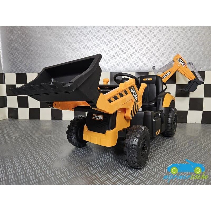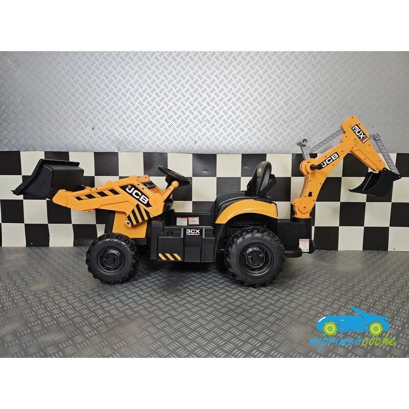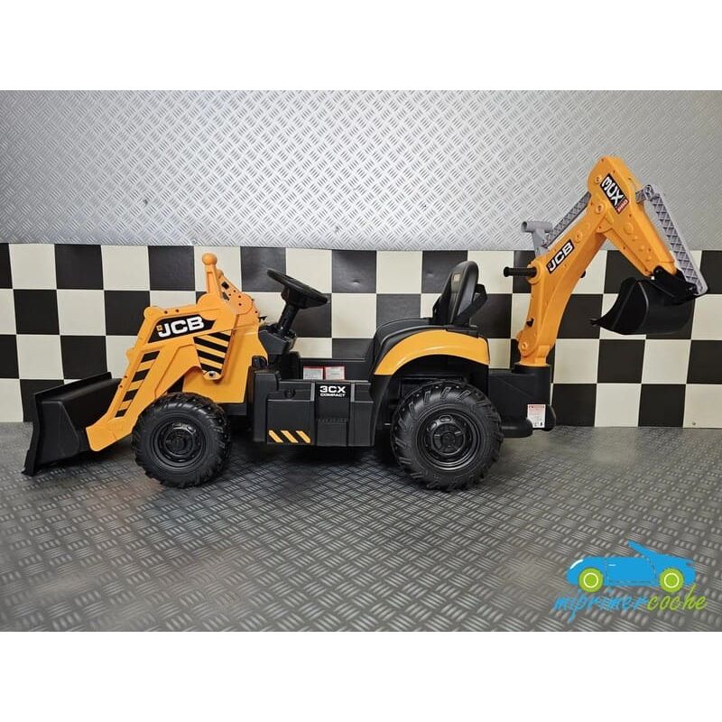 Retroexcavadora eléctrico infantil JCB SITEMASTER 12V con pala y cucharon , mando distancia 2.4G, equipo completo de música , 2 motores .