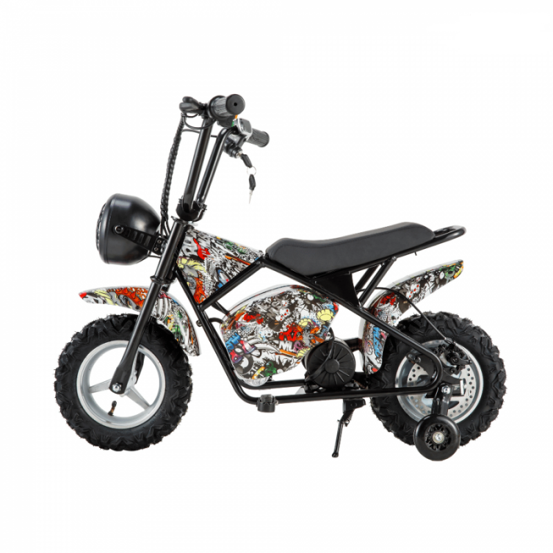 · Mini moto para niños de pequeñas dimensiones, pues mide tan sólo 45 cm del sillín al suelo