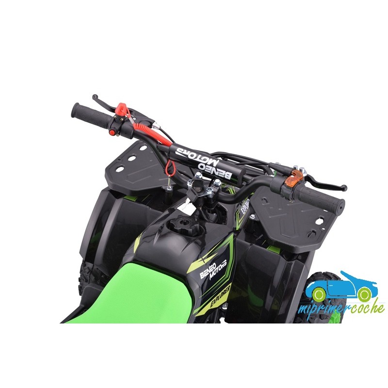 Precaución: El arrancador manual Easy Start de tu mini quad tiene un mecanismo que multiplica la potencia del usuario, ayudándote a arrancar el quad fácilmente sin ejercer mucha fuerza. Utilizando la mezcla de combustible recomendada (sin plomo 98 + aceite de motor al 3% según lo aconsejado por la marca), el vehículo arrancará con un simple movimiento del brazo hacia el pecho. El estado del arrancador y su correcto funcionamiento dependen del uso que le des. Por lo tanto, el fabricante no cubrirá esta pieza en garantía en caso de daño. (No tires como si fuera una desbrozadora, o la romperás con seguridad). ¿Tienes problemas para arrancar? No dudes en contactar con nuestro servicio de atención al cliente y te ayudaremos.
