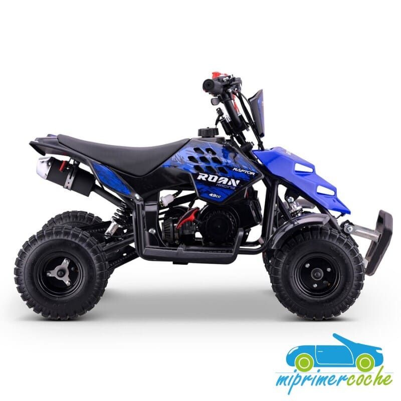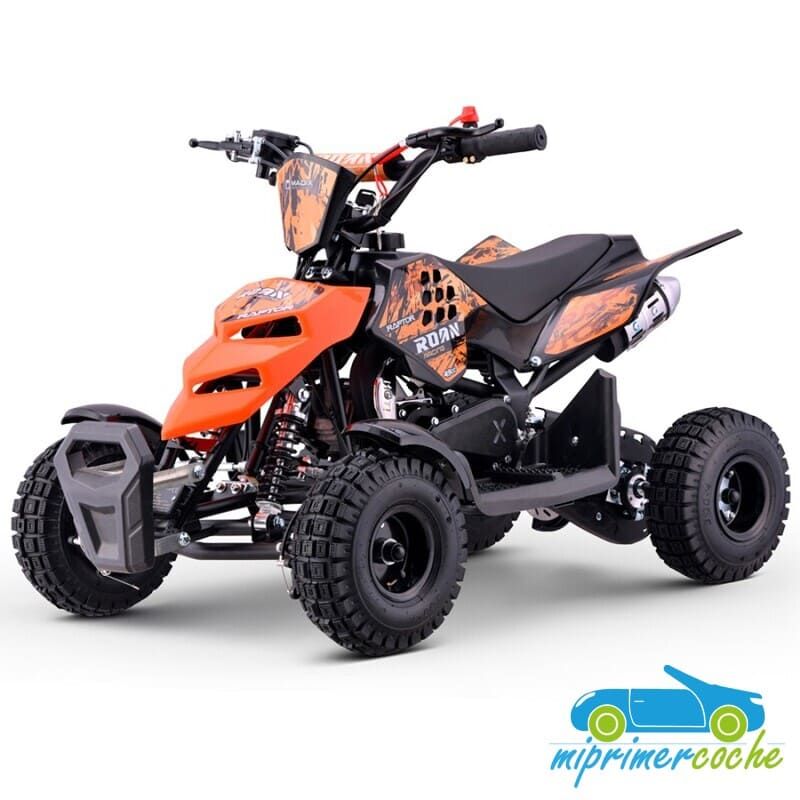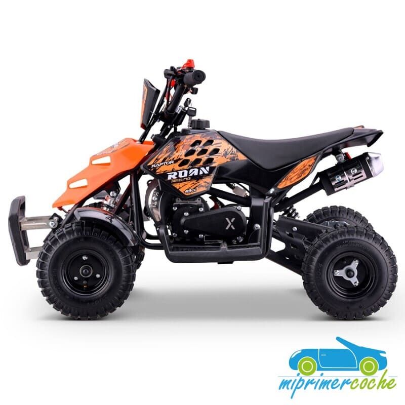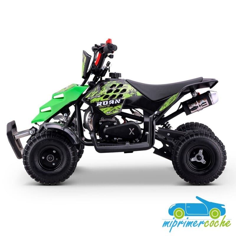 Mini Quad infantil de gasolina RAPTOR R4 49CC con motor de dos tiempos, limitador de velocidad, el sistema ,,hombre al agua'' frenos de discos.