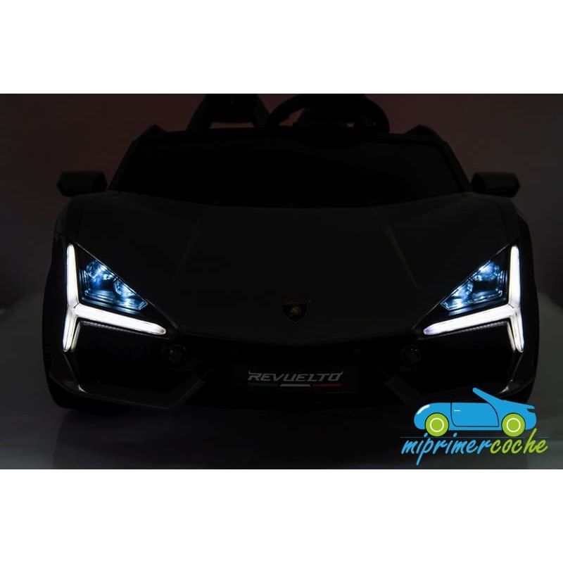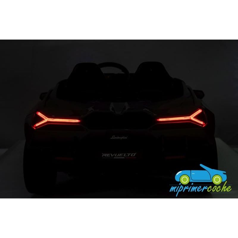 Coche eléctrico para niños LAMBORGHINI REVUELTO XL 24V 2 PLAZAS con motor 24v200w Brushless , ruedas con aire , asientos en poli piel , equipo de música ,capaz de transportar dos niños de hasta 60 kg.