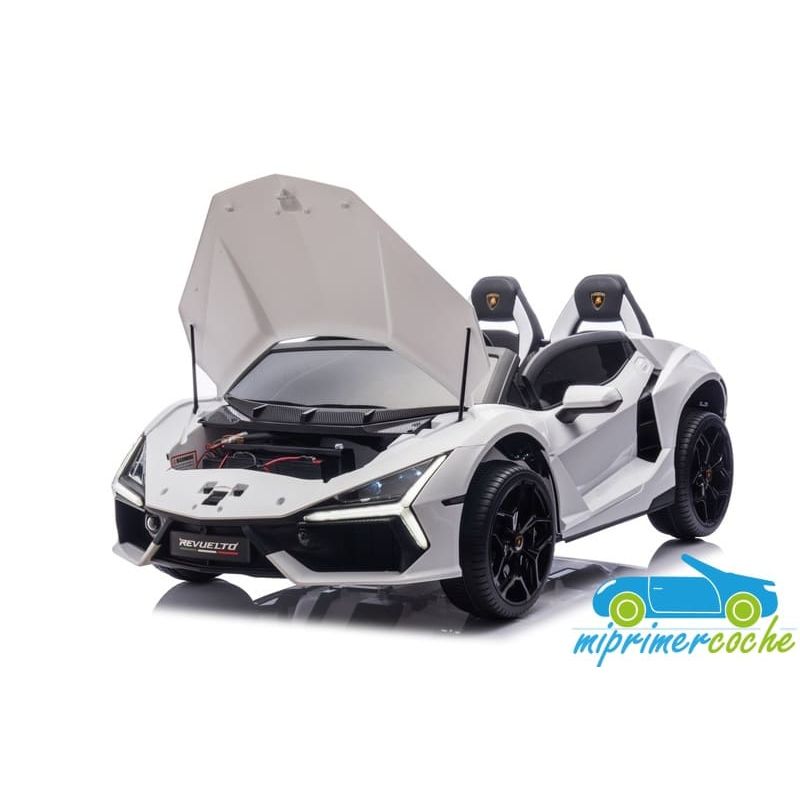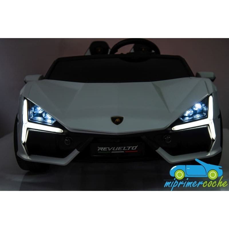 Coche eléctrico para niños LAMBORGHINI REVUELTO XL 24V 2 PLAZAS con motor 24v200w Brushless , ruedas con aire , asientos en poli piel , equipo de música ,capaz de transportar dos niños de hasta 60 kg.