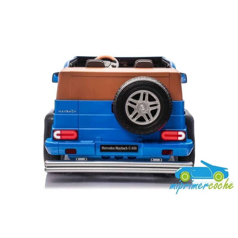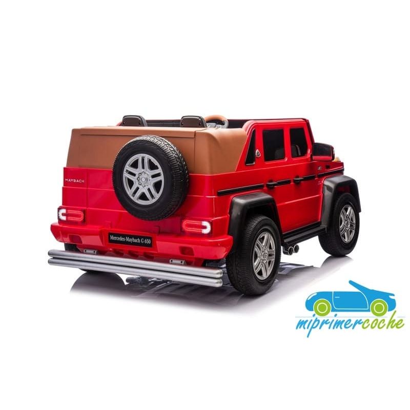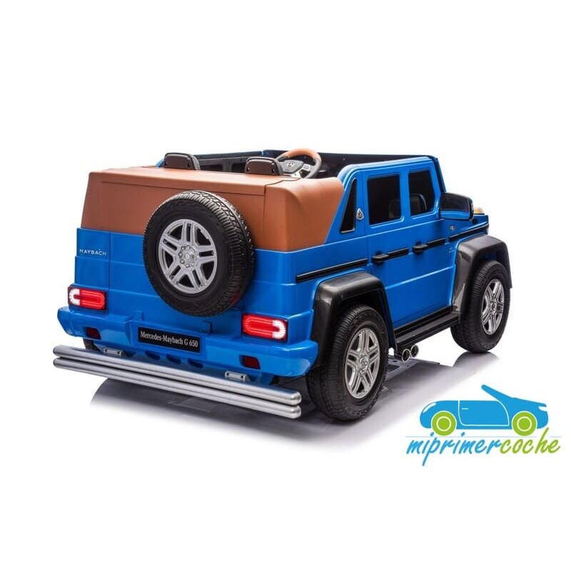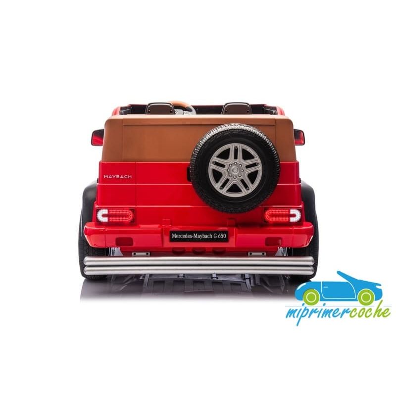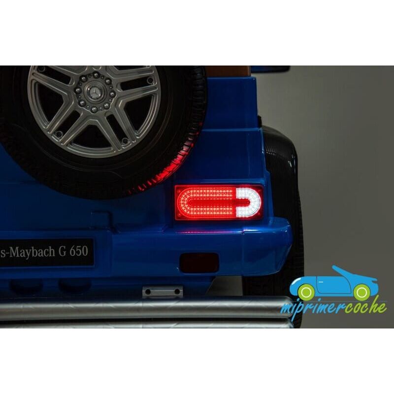 El coche eléctrico infantil Maybach G650 XL es un coche de los más grandes de mercado ,capaz de transportar niños o/y padres con un peso máximo de hasta 100 kg . Su equipamiento es de la gama alta como : luces delanteras y traseras de Leds , luces traseras de marcha atrás cuando se engrana , luces de freno cuando pisamos el pedal de freno , arranque mediante llave , asientos ajustables en 3 niveles ,dos pedales (acelerador y freno) , ruedas neumáticas de aire ,podemos decir que es un coche de verdad .