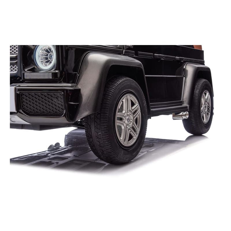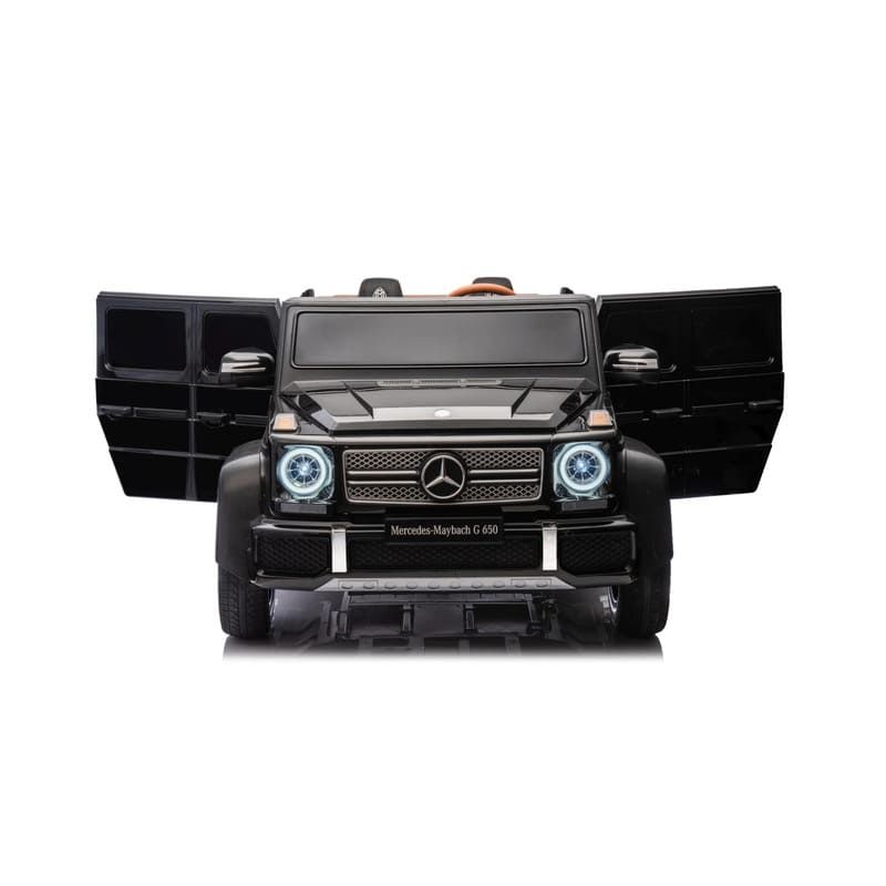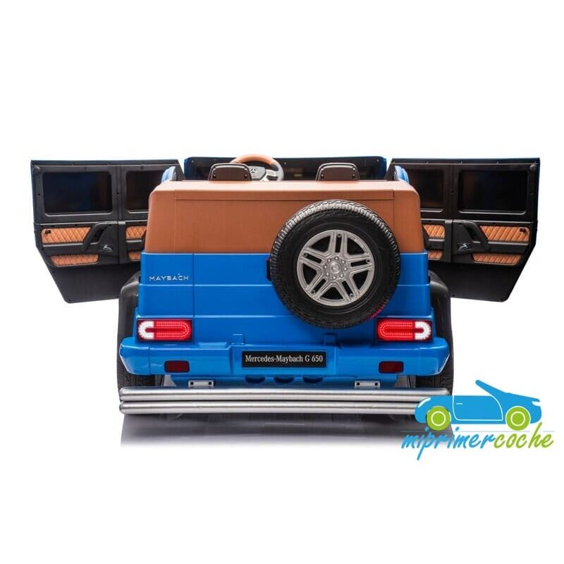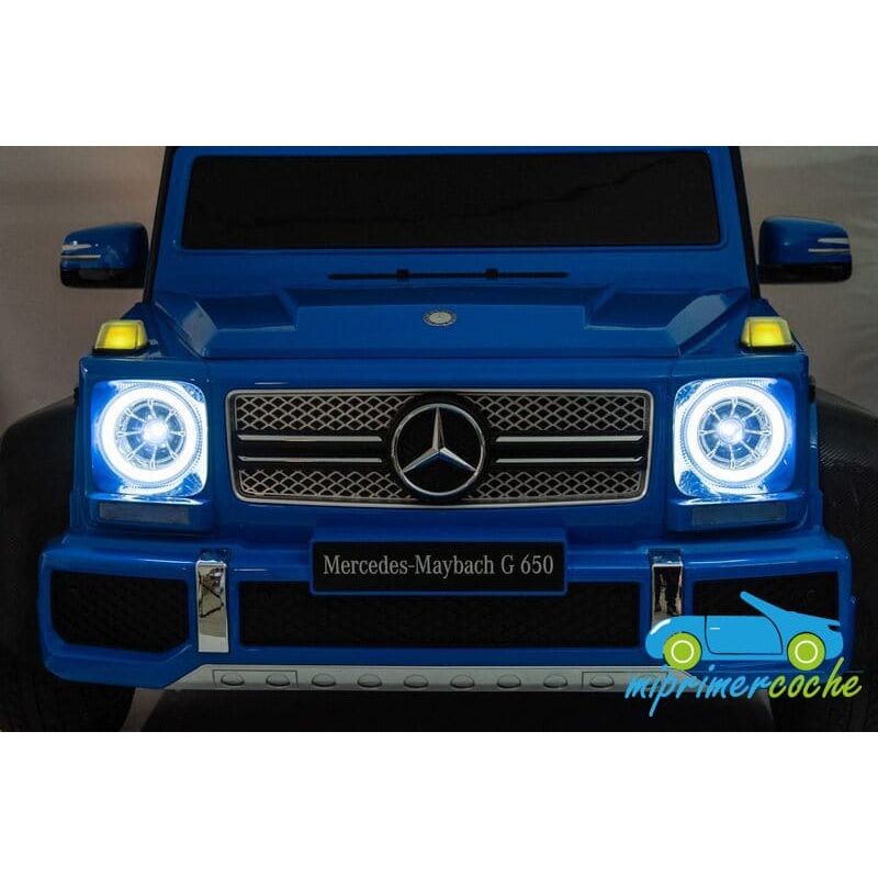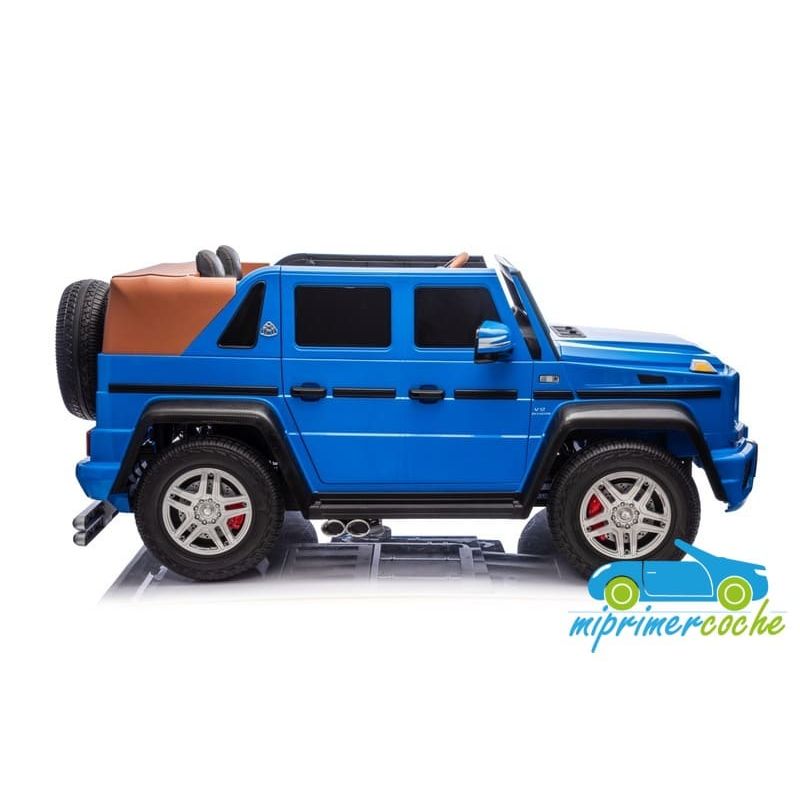 El coche eléctrico infantil Maybach G650 XL es un coche de los más grandes de mercado ,capaz de transportar niños o/y padres con un peso máximo de hasta 100 kg . Su equipamiento es de la gama alta como : luces delanteras y traseras de Leds , luces traseras de marcha atrás cuando se engrana , luces de freno cuando pisamos el pedal de freno , arranque mediante llave , asientos ajustables en 3 niveles ,dos pedales (acelerador y freno) , ruedas neumáticas de aire ,podemos decir que es un coche de verdad .