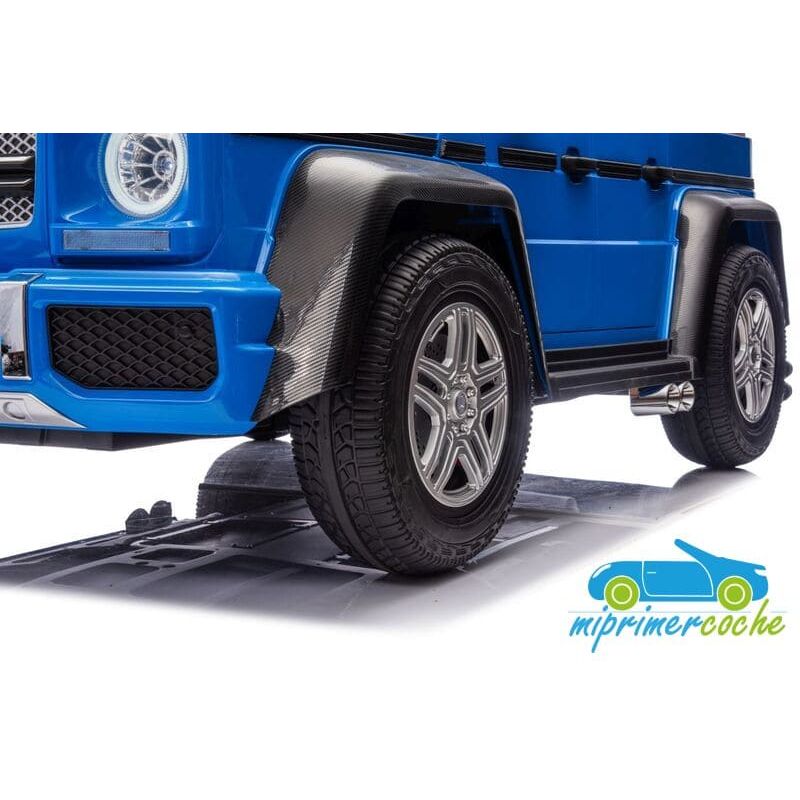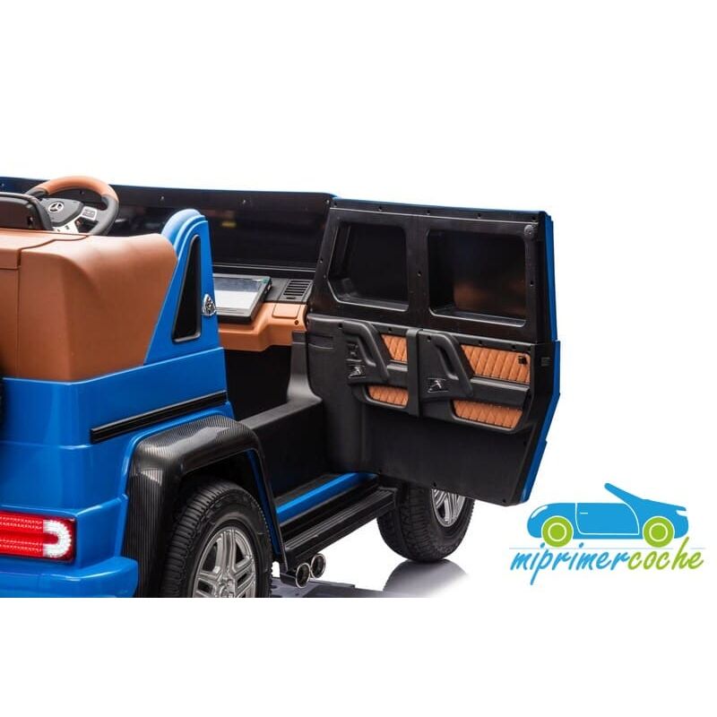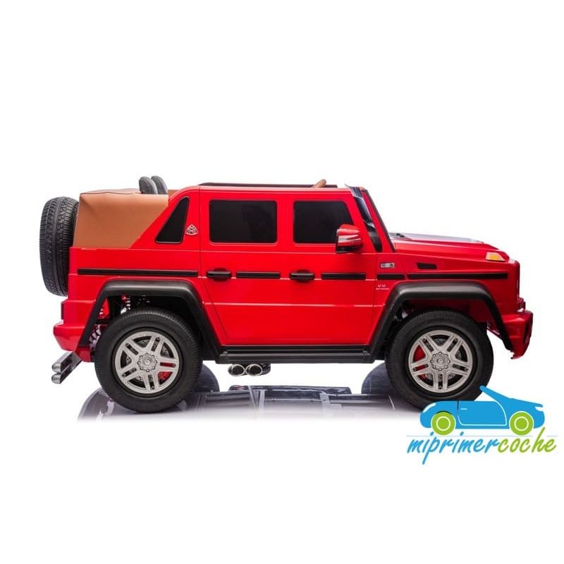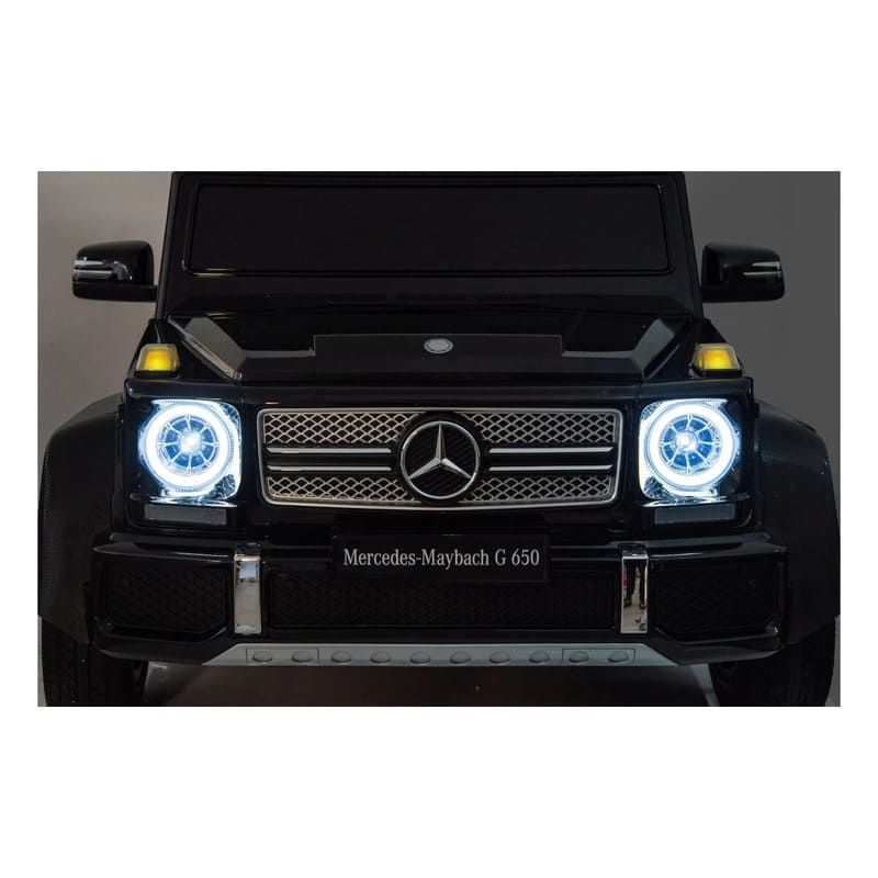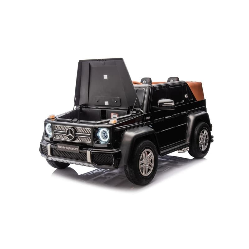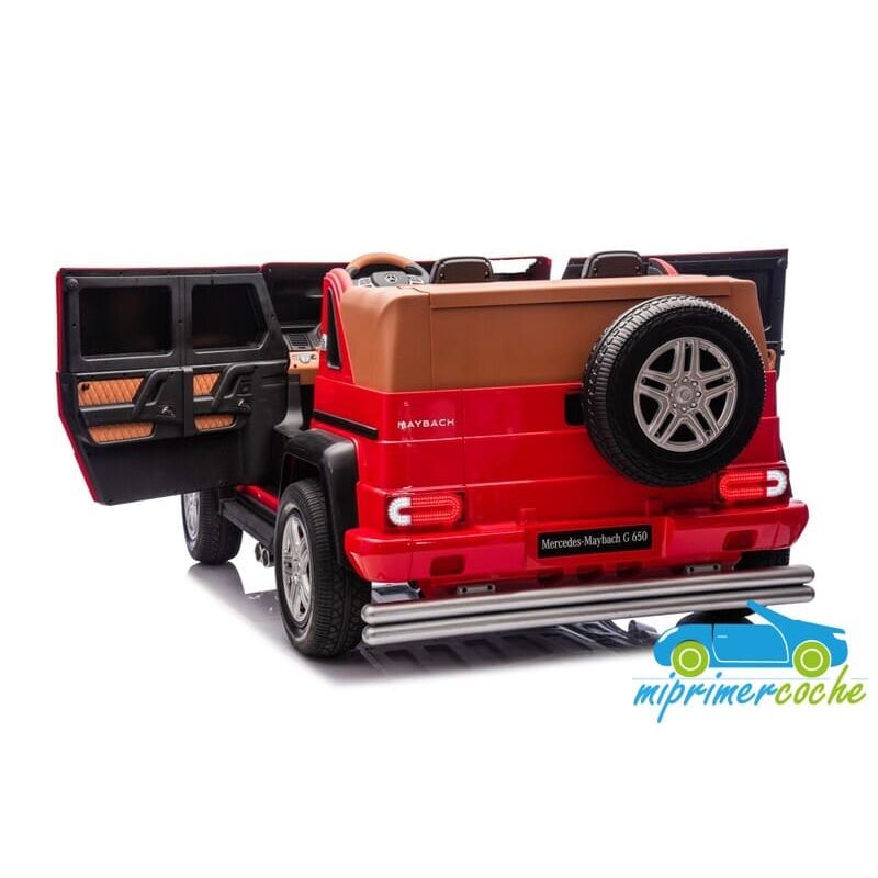 El coche eléctrico infantil Maybach G650 XL es un coche de los más grandes de mercado ,capaz de transportar niños o/y padres con un peso máximo de hasta 100 kg . Su equipamiento es de la gama alta como : luces delanteras y traseras de Leds , luces traseras de marcha atrás cuando se engrana , luces de freno cuando pisamos el pedal de freno , arranque mediante llave , asientos ajustables en 3 niveles ,dos pedales (acelerador y freno) , ruedas neumáticas de aire ,podemos decir que es un coche de verdad .