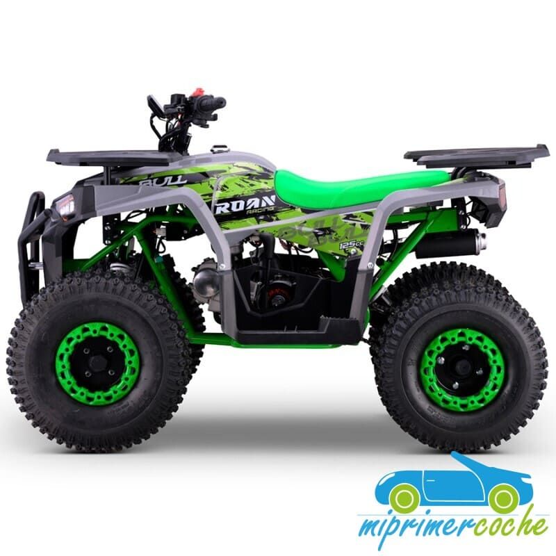 Presentamos el ATV BULL 125cc : un quad de diseño robusto e intuitivo para conductores jóvenes de al menos 8 años. La cuidadosa selección de materiales y la mano de obra precisa, las ventajas mecánicas y físicas de las construcciones en sí mismas brindan un control fácil incluso para los menos experimentados. Un quad infantil muy potente de 125 cc, con arranque automático , transmisión automática , luces led , frenos delanteros de tambor , frenos traseros de discos , pantalla digital con información para el piloto .