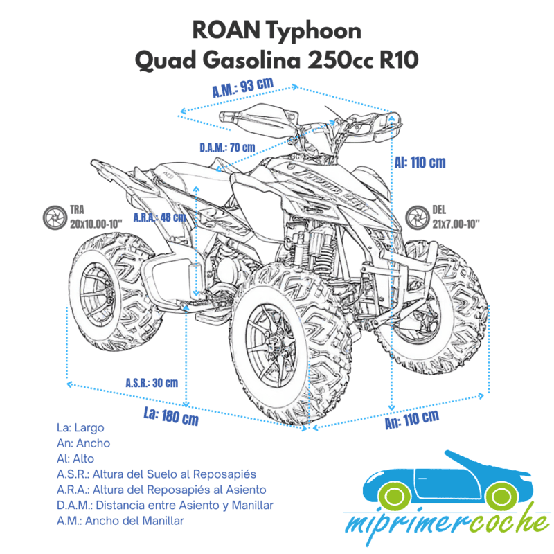 · ruedas neumáticas de 10 pulgadas : delanteras 21x7.00-10'' , traseras 20x10-10''