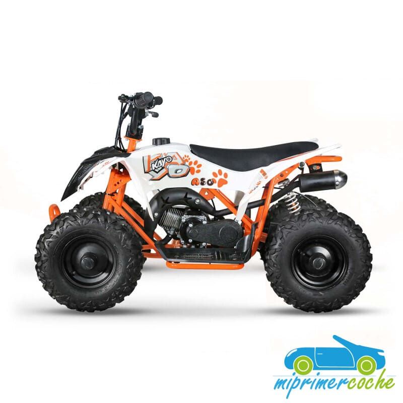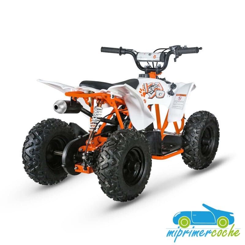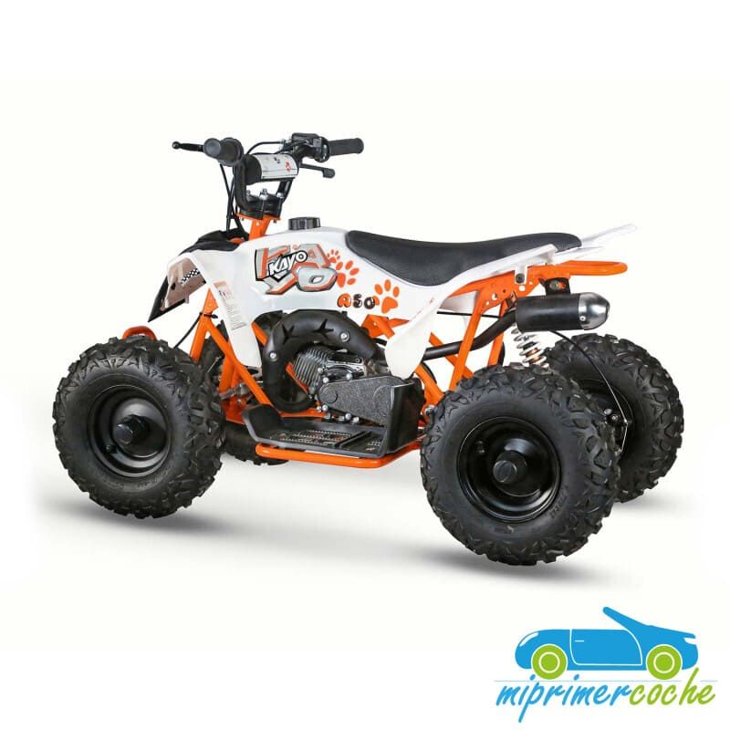 Si buscas un quad de bolsillo para tu hijo , MPC te ofrece este modelo de la marca KAYO. Equipado con un limitador de velocidad y una caja de cambios automática, este quad de NIÑOS de 50 cc es accesible y divertido. Además, ofrece una gran comodidad gracias a una altura del asiento de 48,5 cm, lo que la convierte en la opción ideal para jóvenes principiantes.