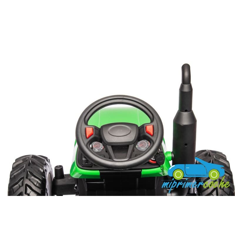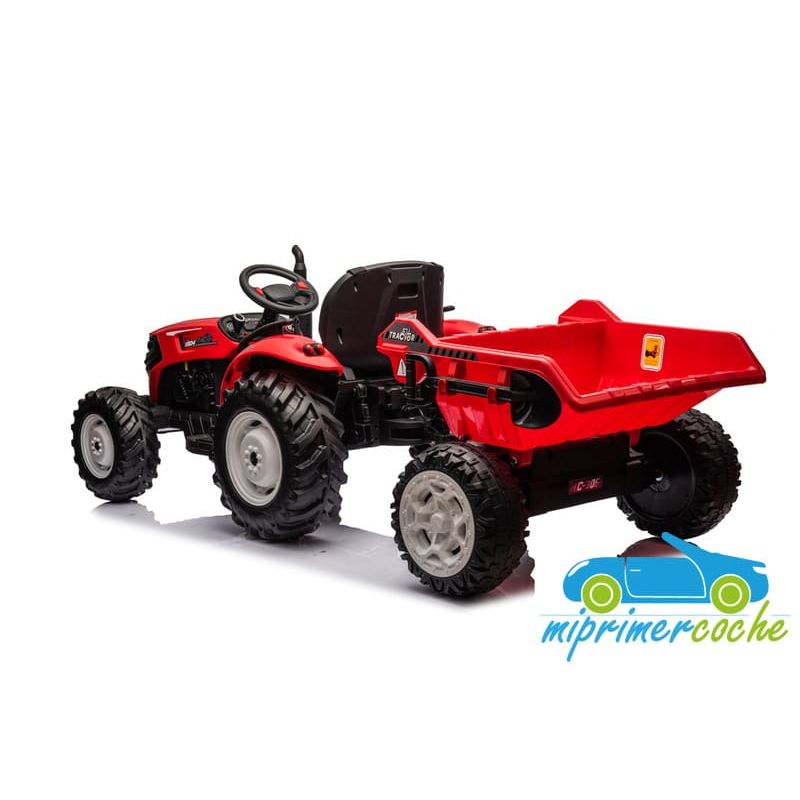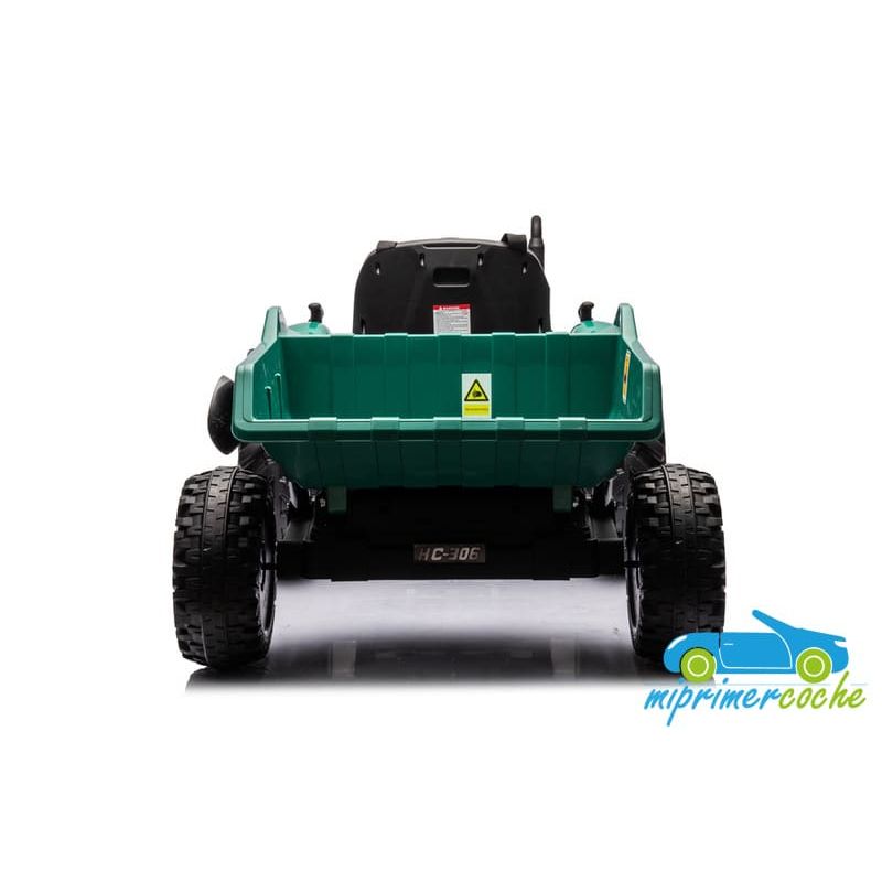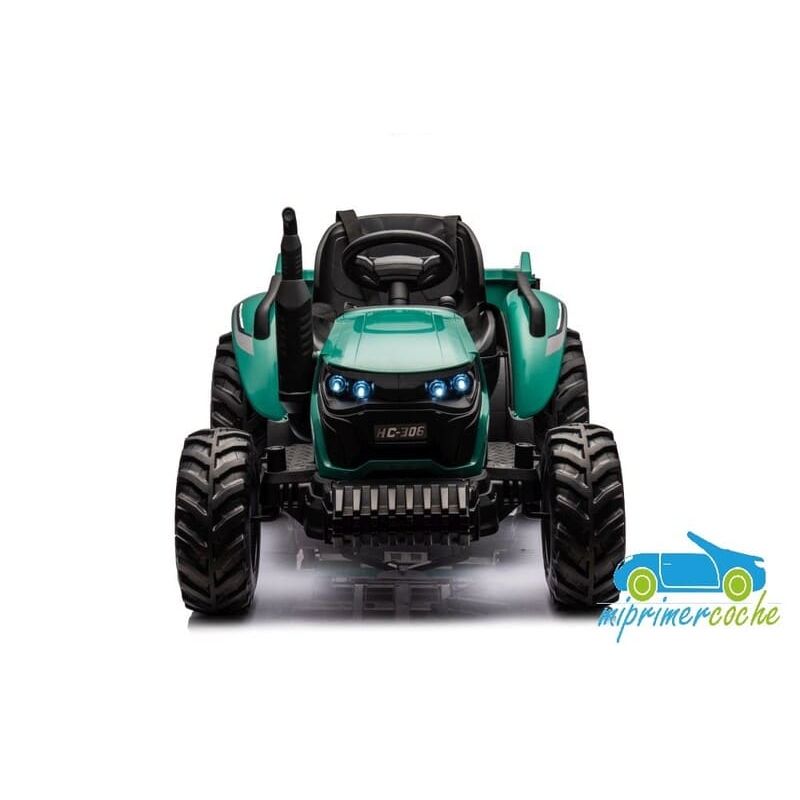 Tractor eléctrico infantil HC306 24V con mando parental 2.4G , 2 motores 24V95w ,ruedas de caucho, llave de arranque , luces, remolque y pala .