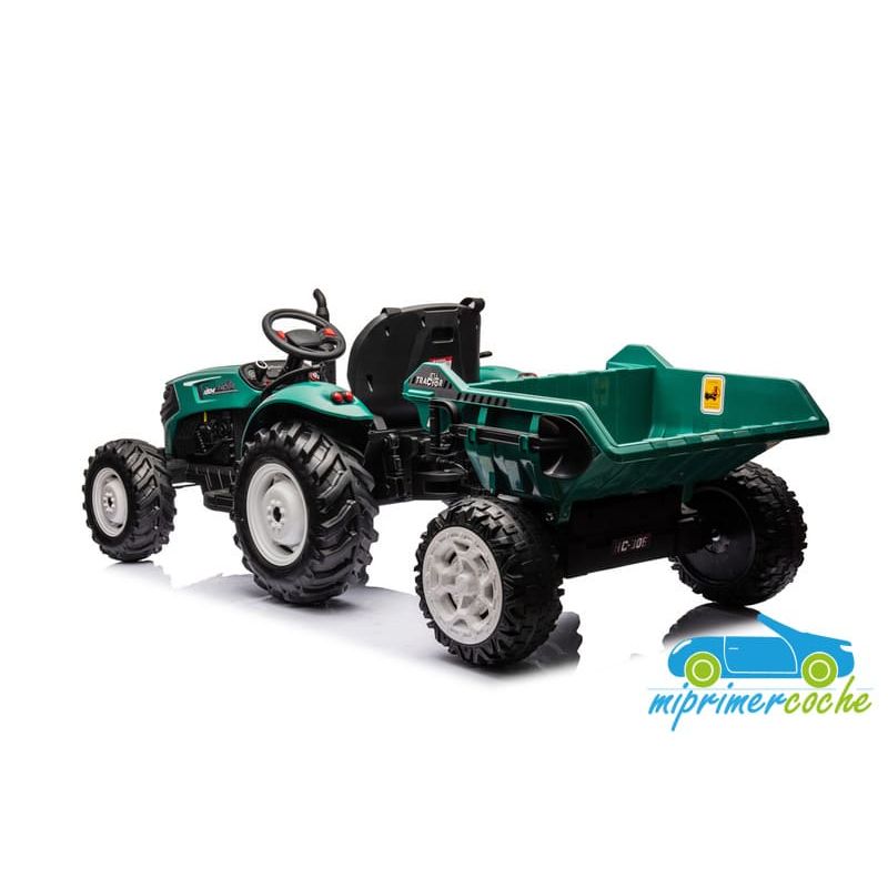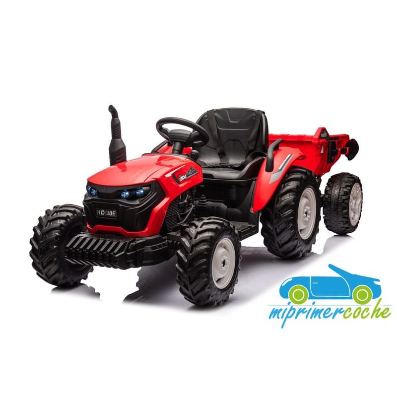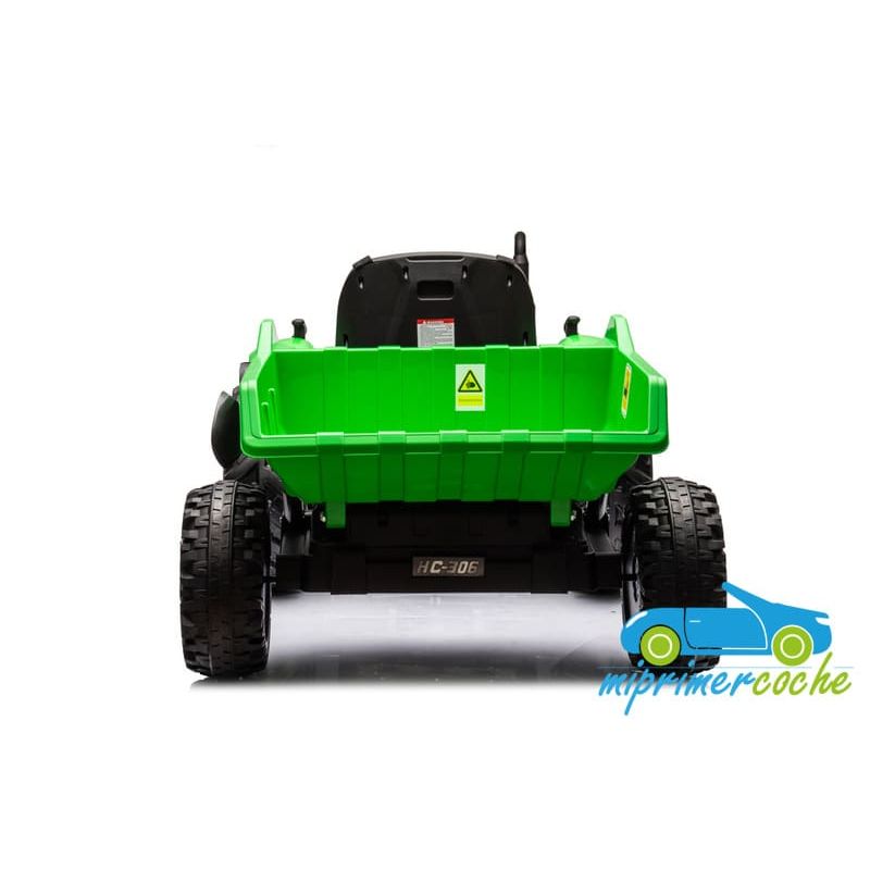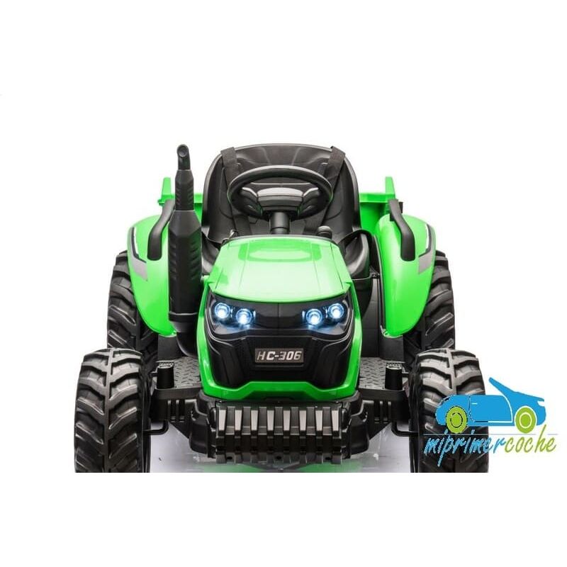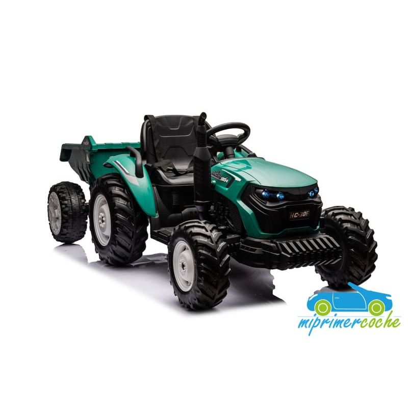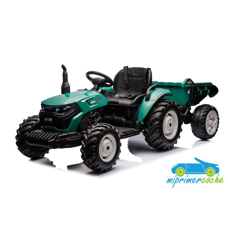 Tractor eléctrico infantil HC306 24V con mando parental 2.4G , 2 motores 24V95w ,ruedas de caucho, llave de arranque , luces, remolque y pala .
