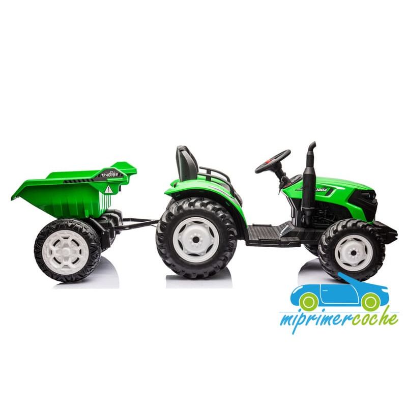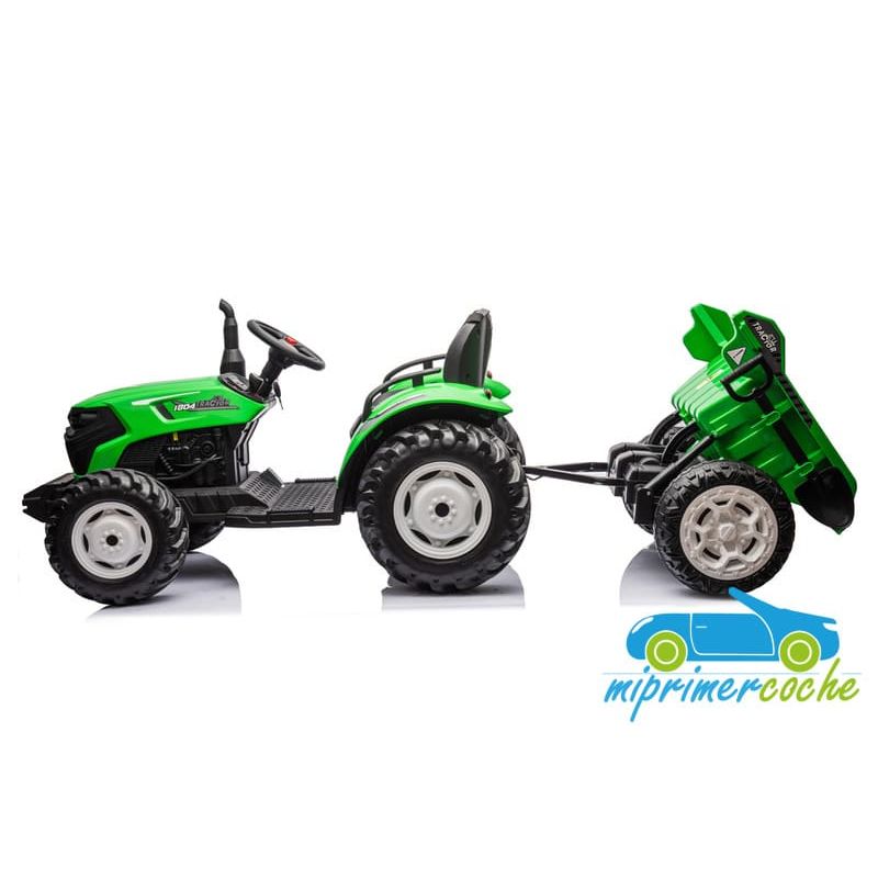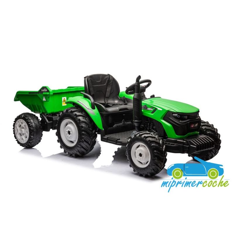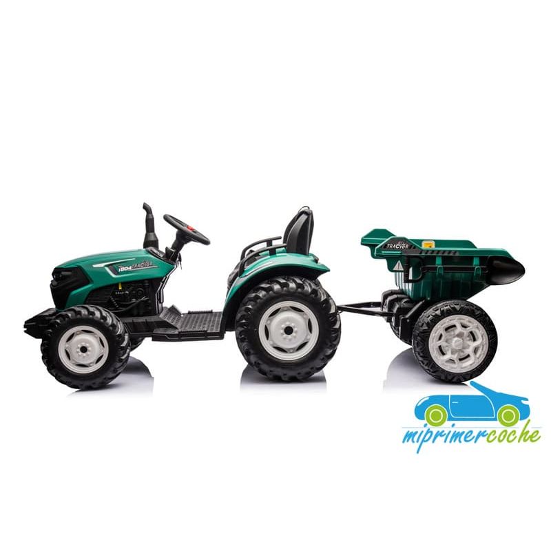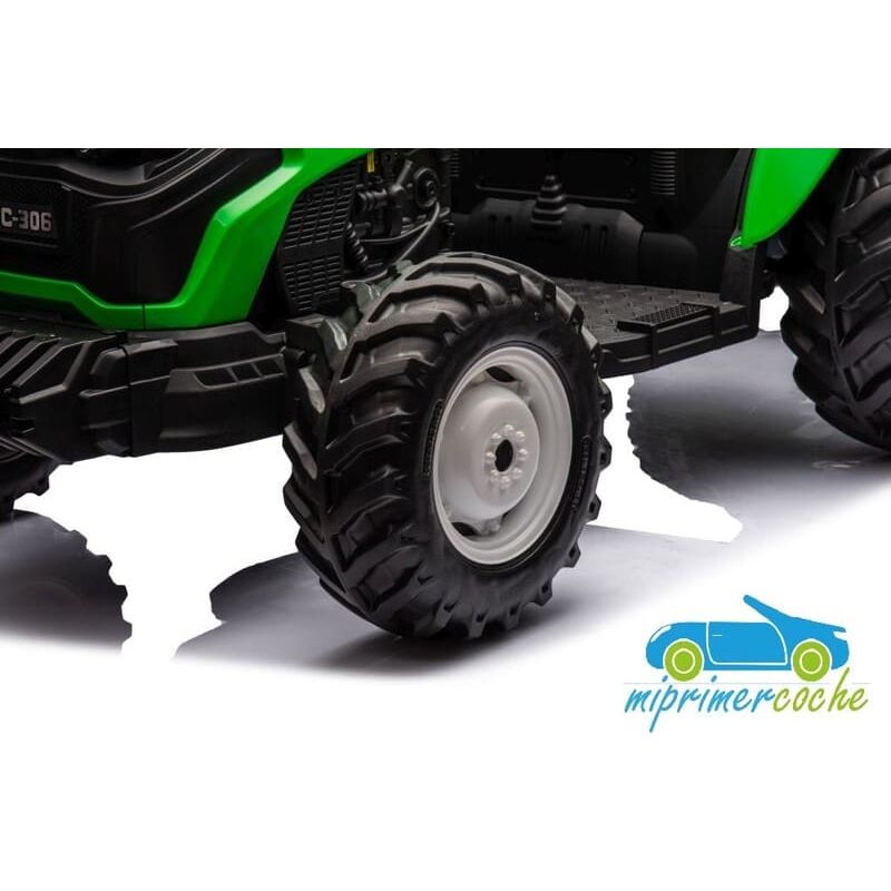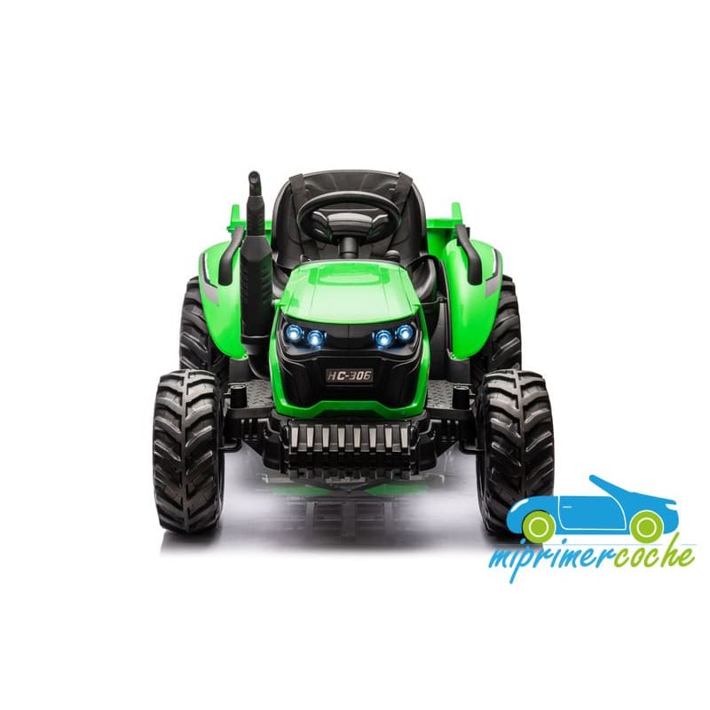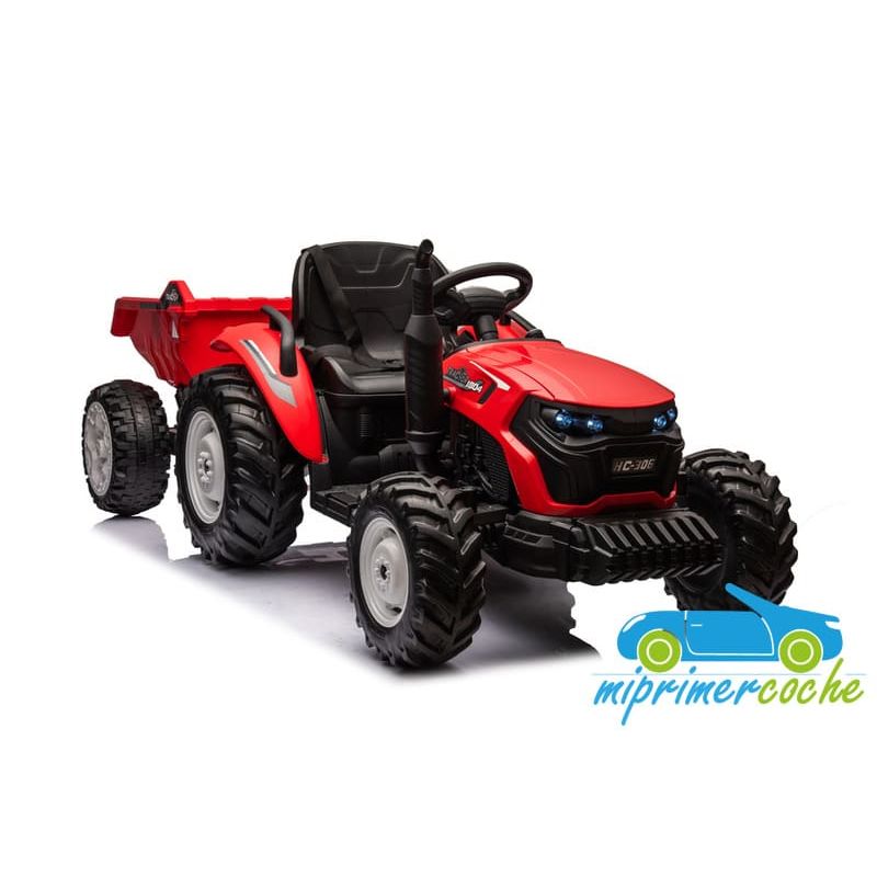 Tractor eléctrico infantil HC306 24V con mando parental 2.4G , 2 motores 24V95w ,ruedas de caucho, llave de arranque , luces, remolque y pala .