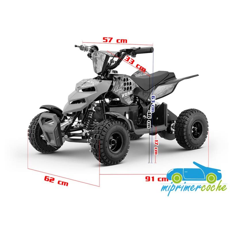El uso de los mini quads infantiles está limitado a terrenos particulares o circuitos cerrados, está totalmente prohibido su uso en la vía pública. Es obligatorio utilizar protecciones y casco.
