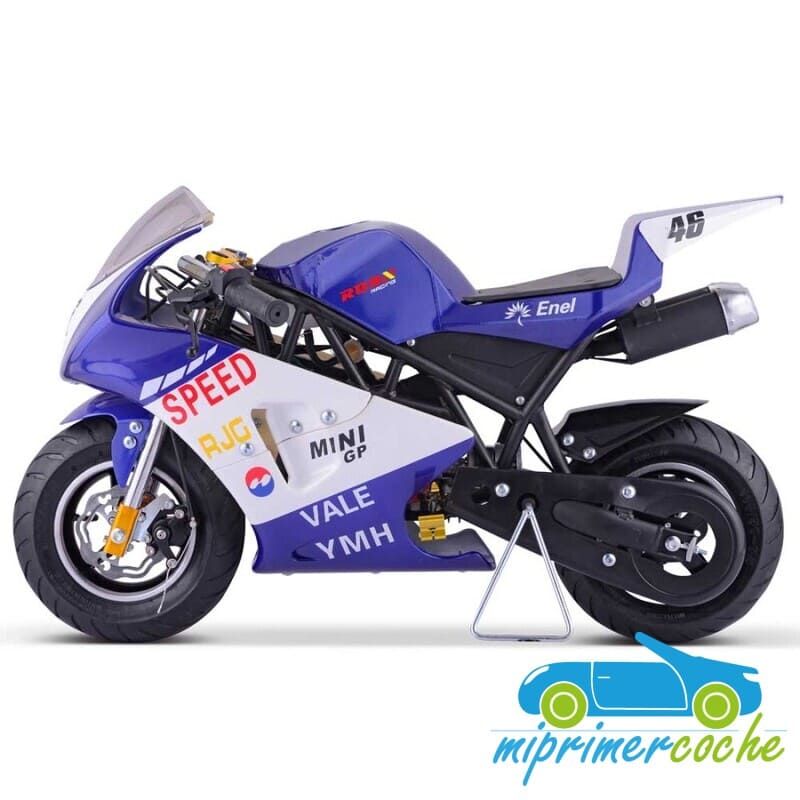 El uso de los mini motos infantiles está limitado a terrenos particulares o circuitos cerrados, está totalmente prohibido su uso en la vía pública. Es obligatorio utilizar protecciones y casco.