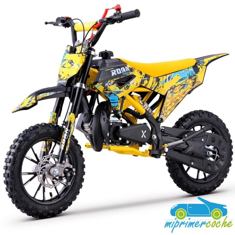 Mini moto de gasolina para niños CROSS RXF 49CC 2 tiempos, 4.5CV , frenos de discos, limitador de velocidad, potente , reforzada y llamativa .