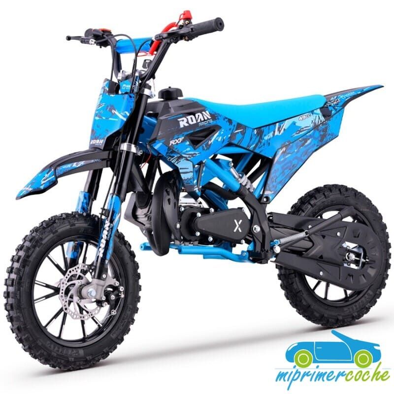 Mini moto de gasolina para niños CROSS RXF 49CC 2 tiempos, 4.5CV , frenos de discos, limitador de velocidad, potente , reforzada y llamativa .