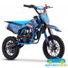 Mini moto off-road para niños con motor de 49cc, ruedas de 10”, frenos de disco, limitador de velocidad y sistema hombre al agua. Alcanza hasta 45 km/h. Altura al sillín: 60 cm. Arranque fácil por tirador..