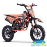 Mini moto off-road para niños con motor de 49cc, ruedas de 10”, frenos de disco, limitador de velocidad y sistema hombre al agua. Alcanza hasta 45 km/h. Altura al sillín: 60 cm. Arranque fácil por tirador..