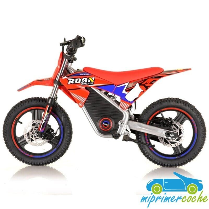 Moto eléctrica para niños 36V350W con neumáticos hinchables, asiento de cuero, suspensión, batería de Litio, velocidad de hasta 30 km, limitador de velocidad, frenos de discos.