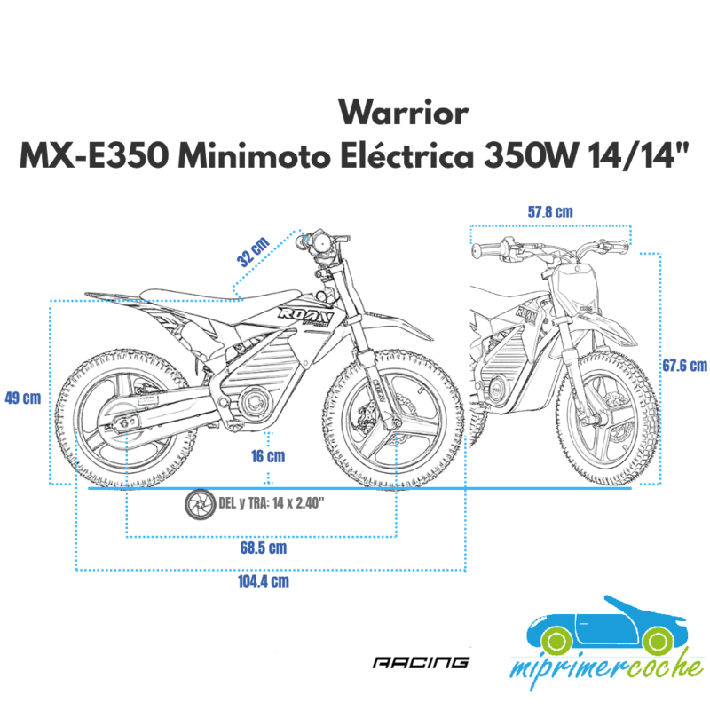 Con una altura del suelo al asiento de 49 cm, la Moto Eléctrica infantil WARRIOR MX-E350 36V 350W, es la elección ideal para los más pequeños pilotos que buscan aventura y diversión. Diseñada con un potente motor de 350W de la marca Brushless y características de seguridad mejoradas, ofrece una experiencia de conducción emocionante y segura. Perfecta para niños a partir de 5 años que busquen algo más en el mundo de las dos ruedas. El diseño de esta minimoto ha sido cuidadosamente pensado para ofrecer una experiencia segura y cómoda. Cuenta con un limitador de velocidad ajustable, lo que permite a los padres elegir entre tres configuraciones de velocidad: 30 km/h, 22 km/h o 15 km/h. Esta opción de control es ideal para ajustar la velocidad según la experiencia del niño. Por ello garantiza que siempre esté manejando a un ritmo que le permita mantener el control total del vehículo.