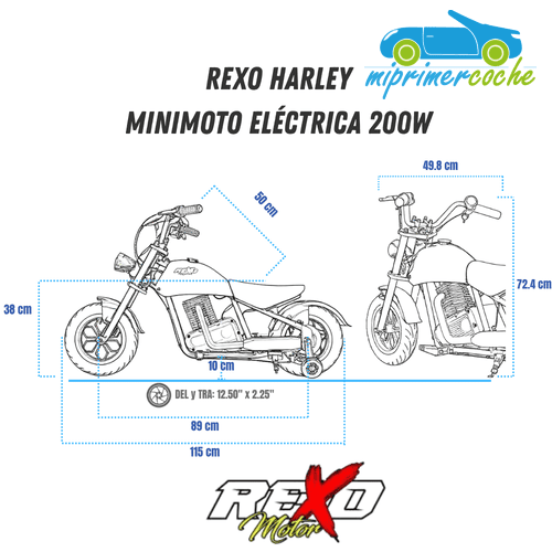 La Mini Harley REXO cuenta con tres velocidades ajustables (8, 12 y 16 km/h), permitiendo adaptar la conducción al nivel de experiencia del pequeño piloto. Además, sus ruedas de 12” con neumáticos de aire ofrecen un excelente agarre y comodidad en todo tipo de superficies.