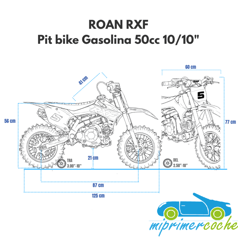 PIT BIKE de gasolina para niños RXF 50CC automático 4 tiempos, frenos de discos, suspensión, cambio automático, arranque eléctrico, limitador de velocidad.