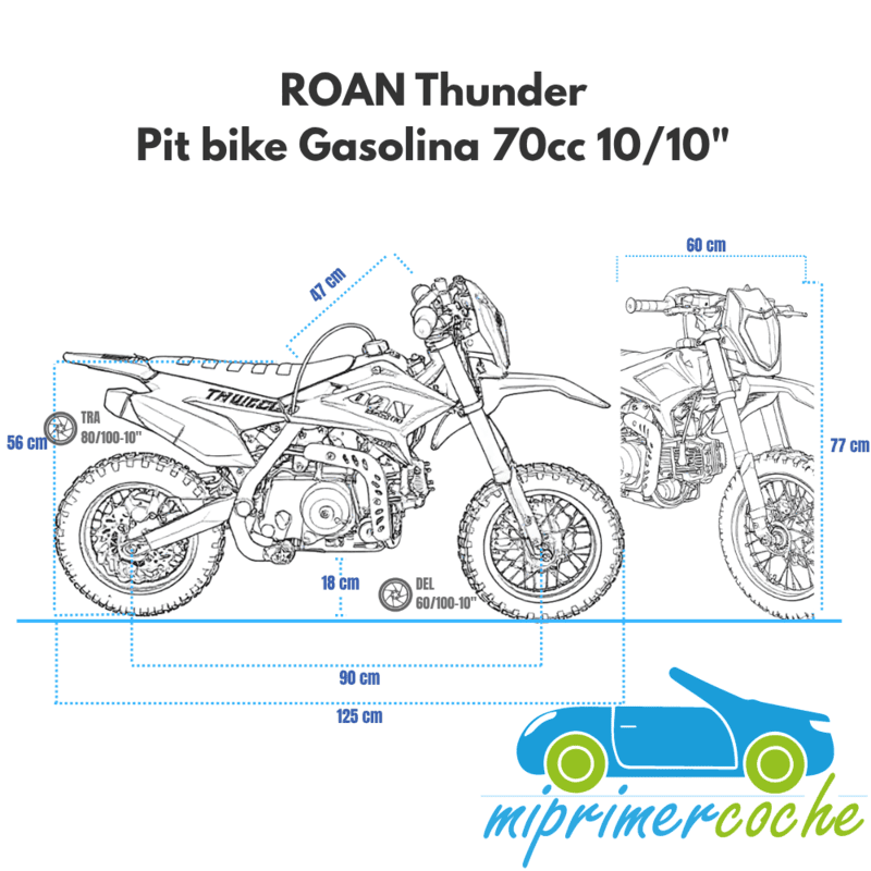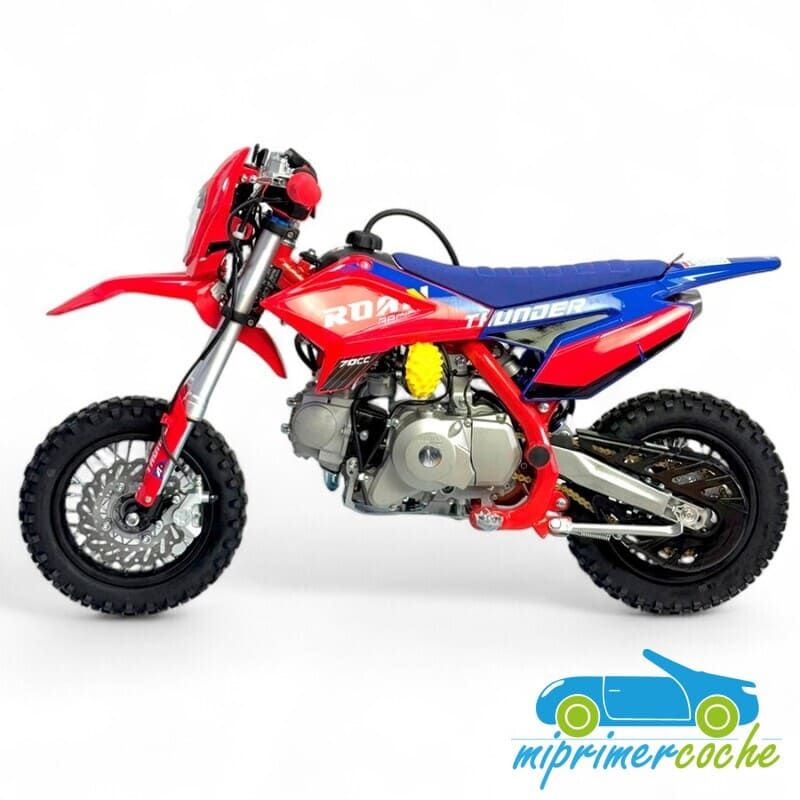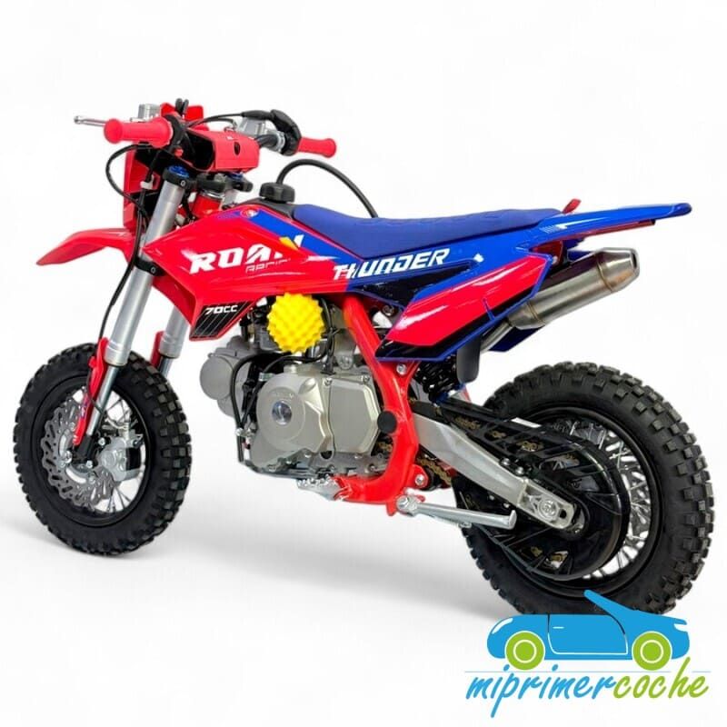 La Roan Thunder 70cc es la pit bike perfecta para que los niños de 5 a 9/10 años disfruten de sus primeras aventuras sobre ruedas.