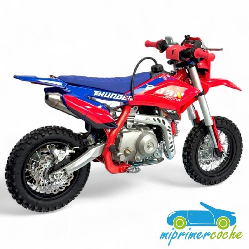 PIT BIKE de gasolina para niños THUNDER 70CC automático 4 tiempos, frenos de discos, suspensión, cambio automático, arranque eléctrico, limitador de velocidad.