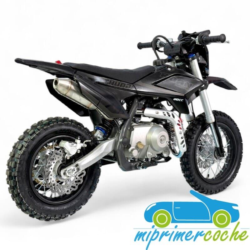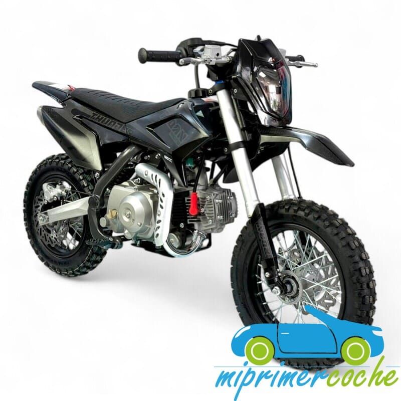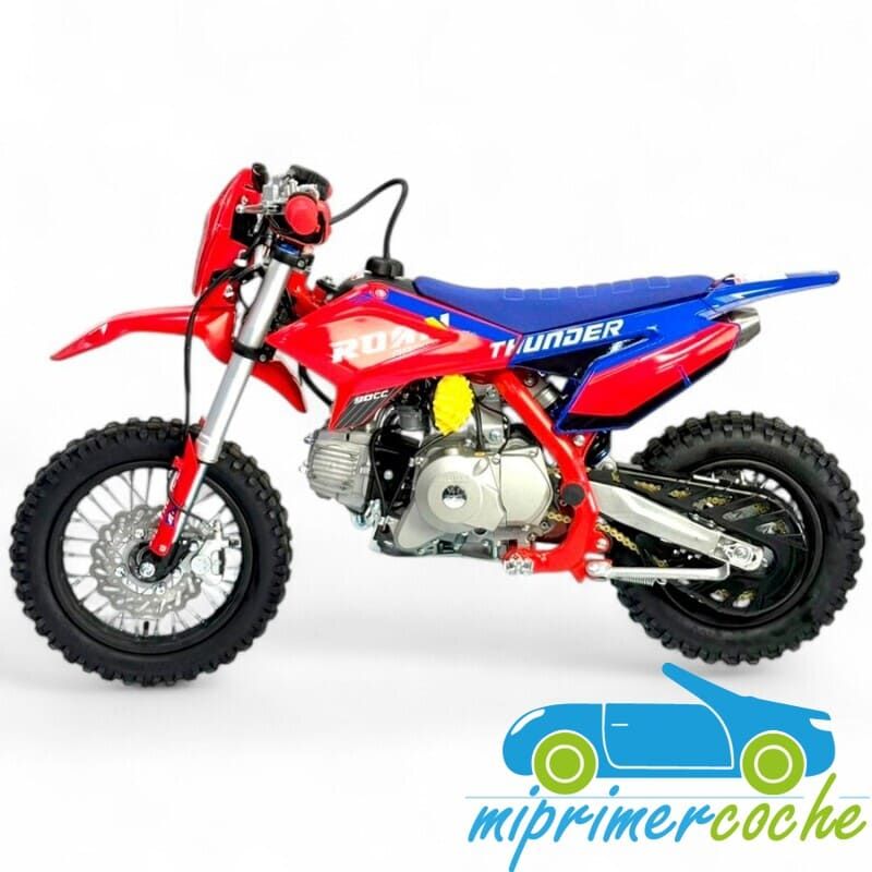 PIT BIKE de gasolina para niños THUNDER 90CC automático 4 tiempos, frenos de discos, suspensión, cambio automático, arranque eléctrico, limitador de velocidad.