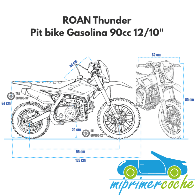 La Roan Thunder 70cc es la pit bike perfecta para que los niños de 6 a 12 años disfruten de sus primeras aventuras sobre ruedas.