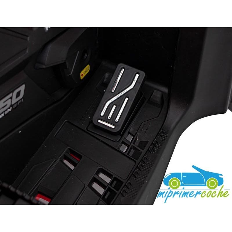 - el niño puede conducir el quad utilizando los controles que están en el interior del coche, con el pedal acelerador hacia adelante / atrás y girar con el manillar. Cuando el niño levanta el pie del acelerador, aparece el freno eléctrico con función de parar el coche.