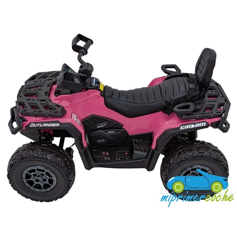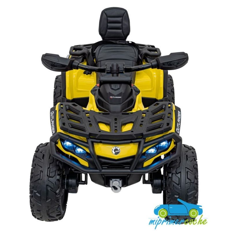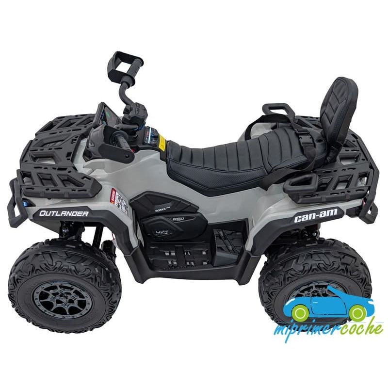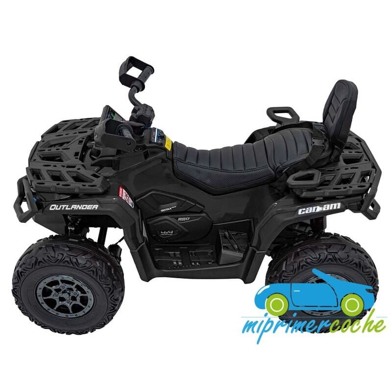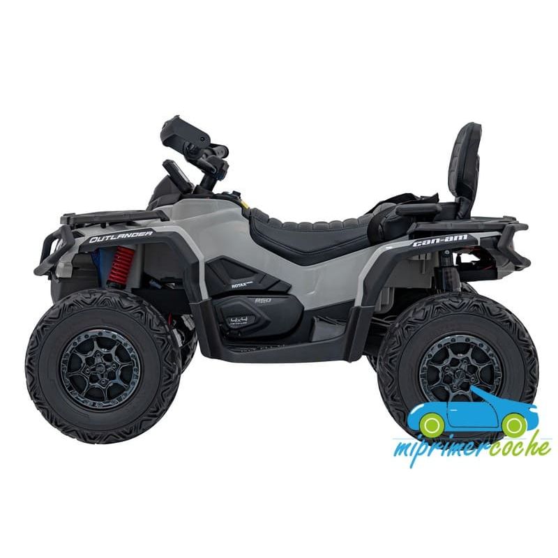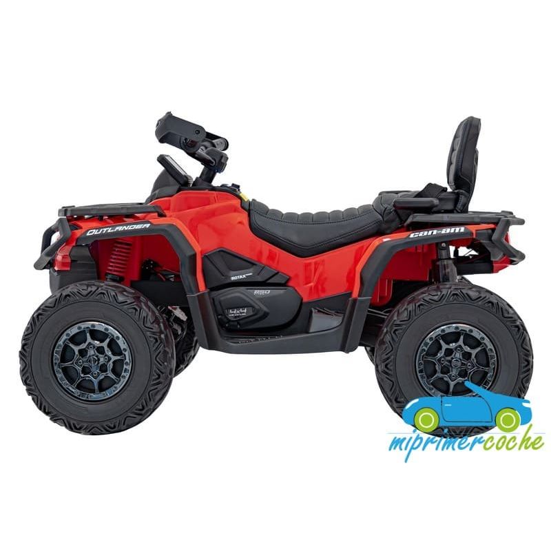 Atv Quad eléctrico infantil CAN-AM Outlander 12V con 4 motores de 200W, 2 plazas, luces LED, bluetooth, radio, ruedas de caucho, asiento en polipiel y capacidad de carga de hasta 50 kg. ¡Potencia, confort y diversión asegurada!