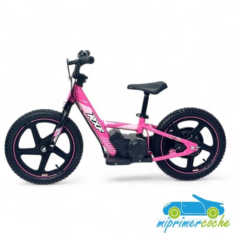 La Bicicleta Eléctrica para niños RFN de 16 pulgadas es el modelo de equilibradores eléctricos que funcionan sobre la base de una bicicleta, solo que sin pedales, con accionamiento puramente eléctrico controlado a través del acelerador en el manillar. Este tipo de vehículo se beneficia de los últimos avances que ofrece el mercado con la batería de litio. Es realmente fácil de controlar y muy complejo, ideal para el desarrollo de las capacidades físicas de los niños de 4 a 7 años más o menos .