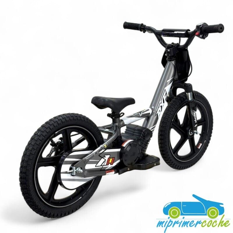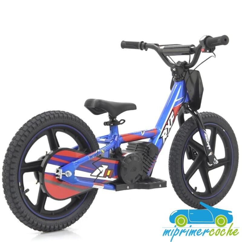 La Bicicleta Eléctrica para niños RFN de 16 pulgadas es el modelo de equilibradores eléctricos que funcionan sobre la base de una bicicleta, solo que sin pedales, con accionamiento puramente eléctrico controlado a través del acelerador en el manillar. Este tipo de vehículo se beneficia de los últimos avances que ofrece el mercado con la batería de litio. Es realmente fácil de controlar y muy complejo, ideal para el desarrollo de las capacidades físicas de los niños de 4 a 7 años más o menos .