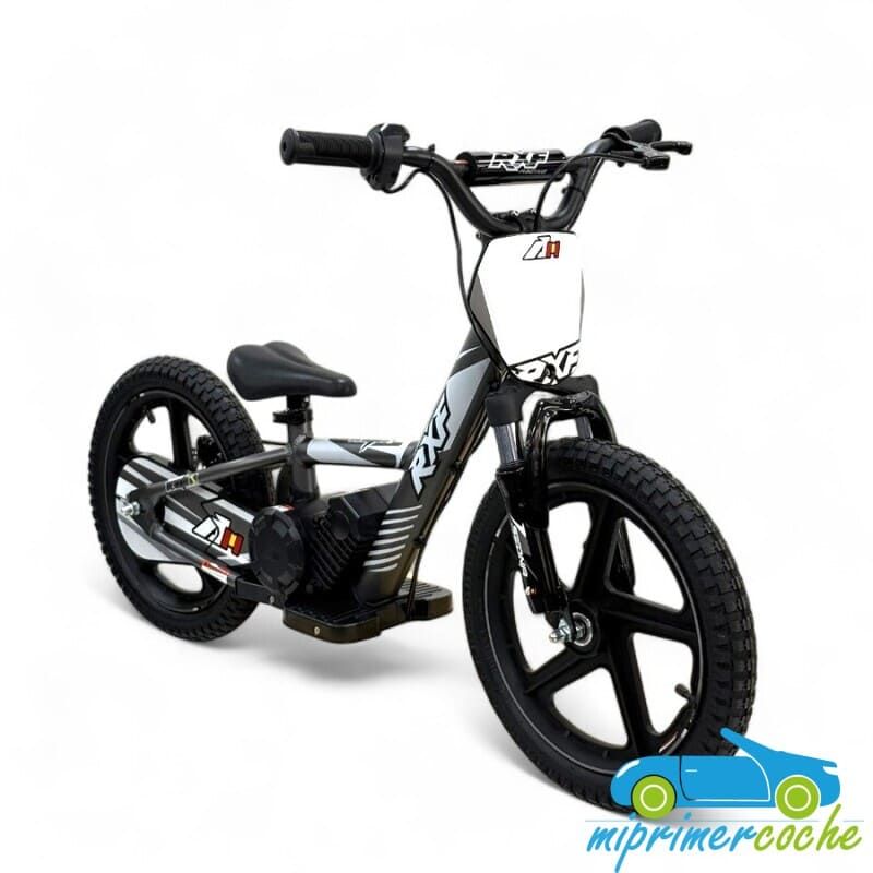 Bicicleta eléctrica para niños RXF 16'' 24V170W, con velocidad máxima de 19 km/h, limitador de velocidad, batería de litio extraíble, asiento ajustable y frenos traseros de tambor. Ideal para diversión segura y controlada.