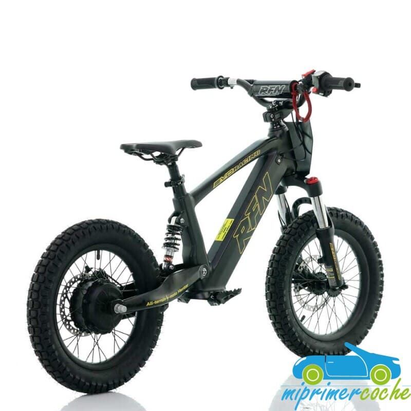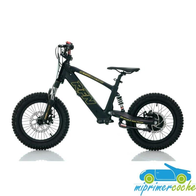 Bicicleta eléctrica para niños RFN EVO 16'' 24V350W, con velocidad máxima de 25 km/h, limitador de velocidad, batería de litio extraíble, asiento ajustable y frenos de discos. Ideal para diversión segura y controlada.