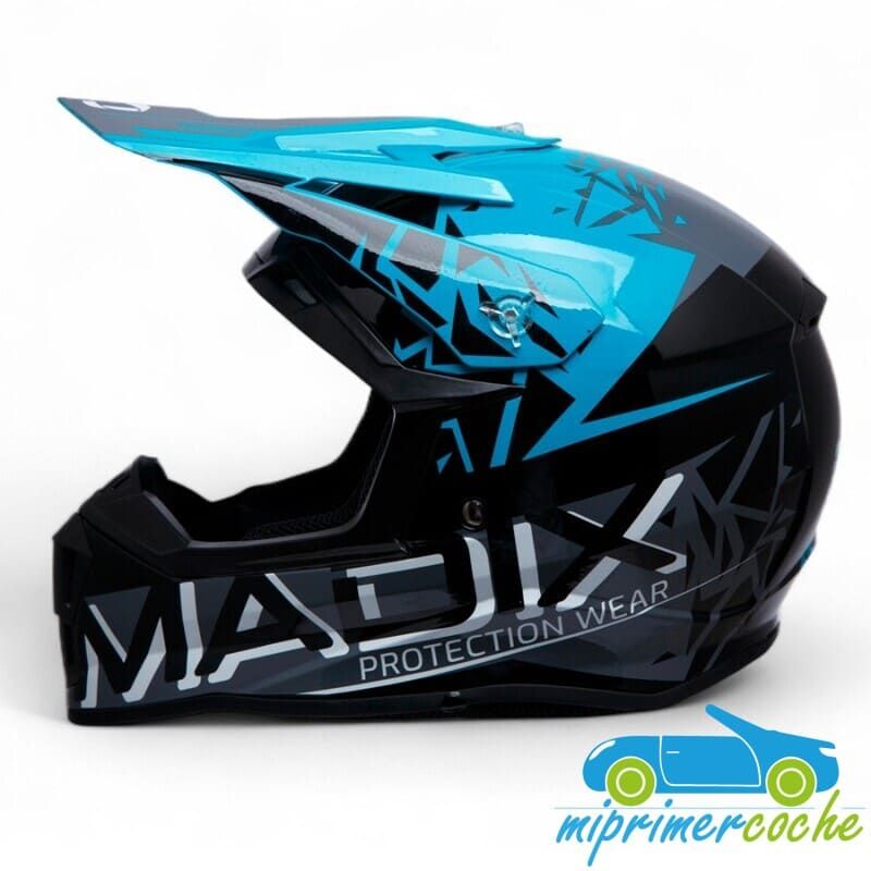 Protege a tu pequeño aventurero con el Casco Cross Niño Madix, diseñado para máxima seguridad, confort y estilo. Con ventilación en 6 puntos y protección facial completa, es perfecto para motocross, quads o miniquads.