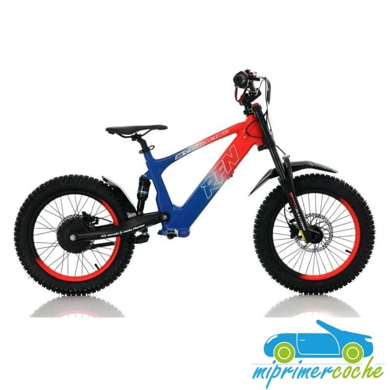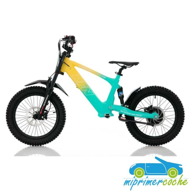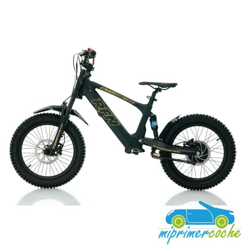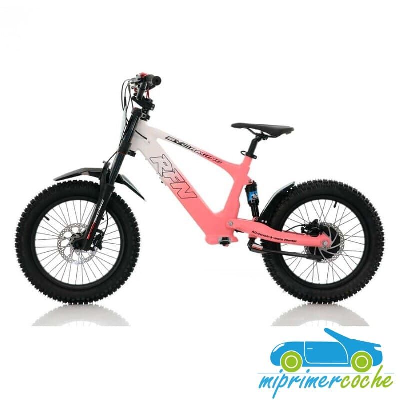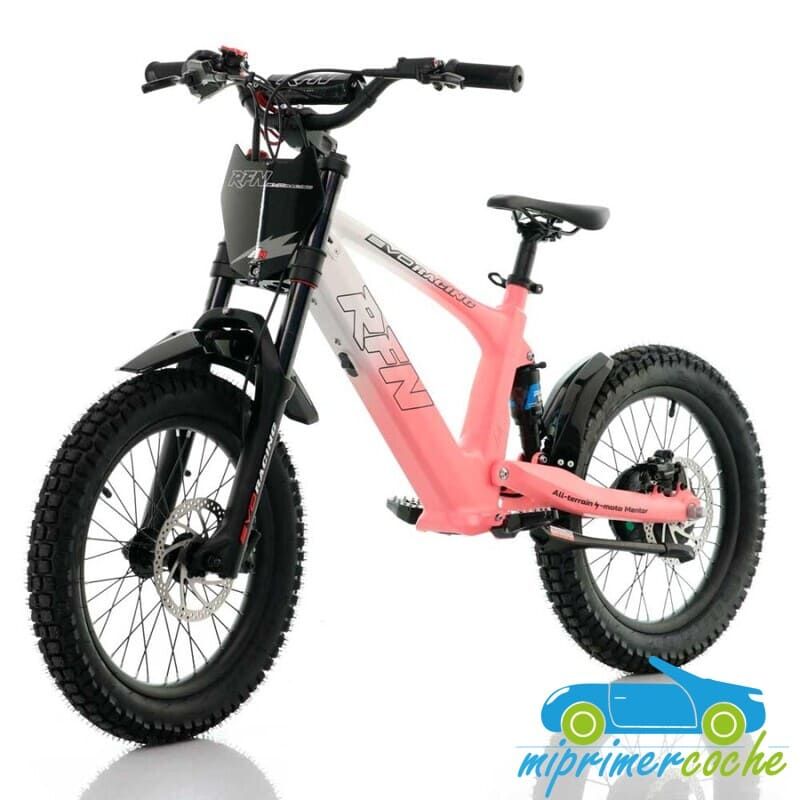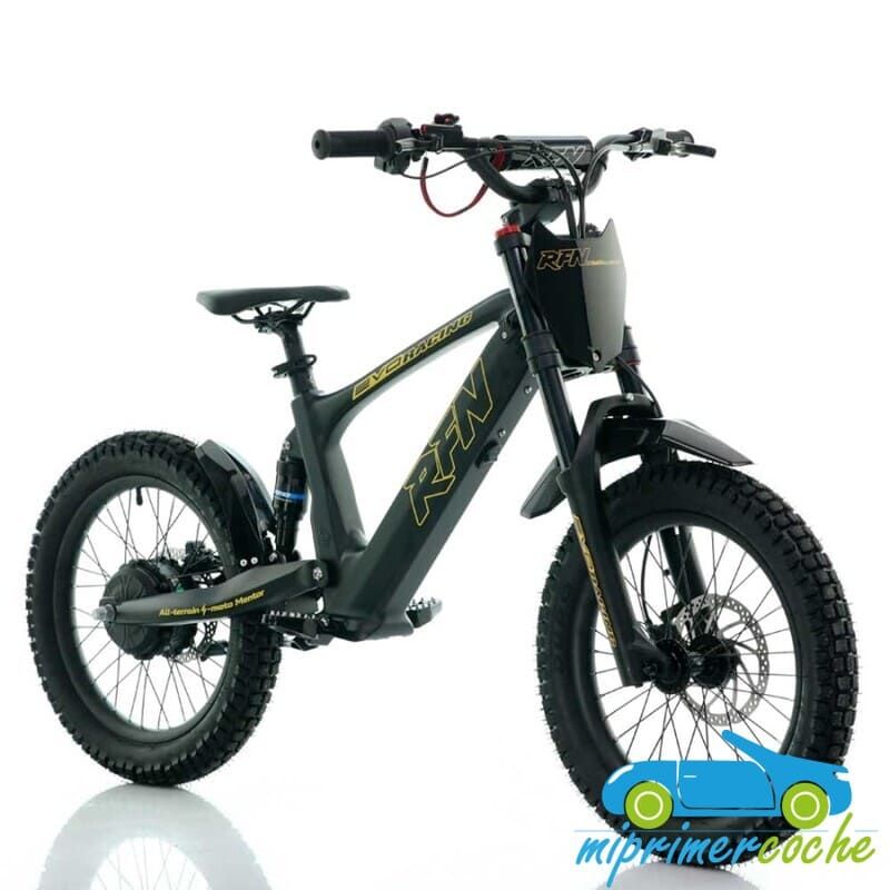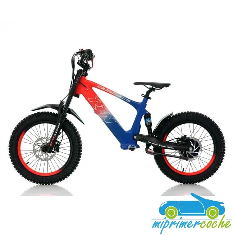 Bicicleta eléctrica para niños RFN EVO 18'' 36V500W, con velocidad máxima de 30 km/h, limitador de velocidad, batería de litio extraíble, asiento ajustable y frenos de discos. Ideal para diversión segura y controlada.