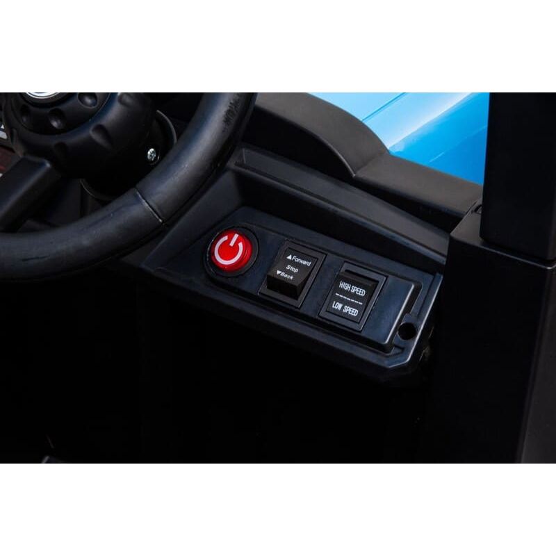 - el tractor puede ser controlado por el padre gracias al mando distancia 2.4G con funciones de marcha hacia delante / atrás , girar izquierda / derecha , selector de velocidades y botón de paro de emergencia .