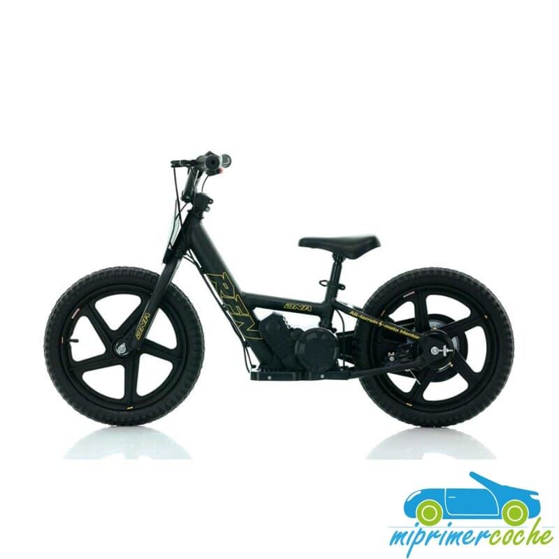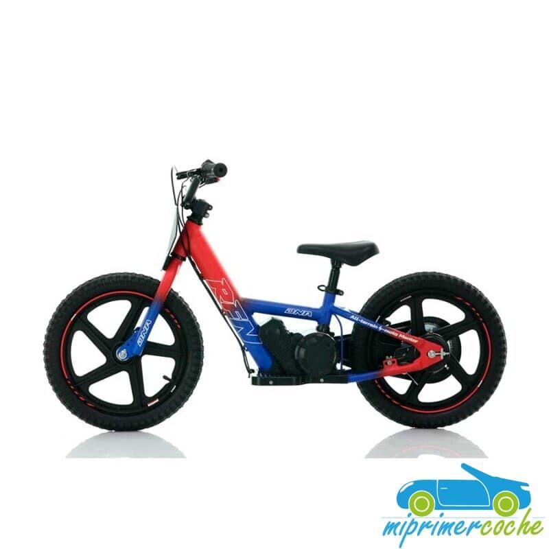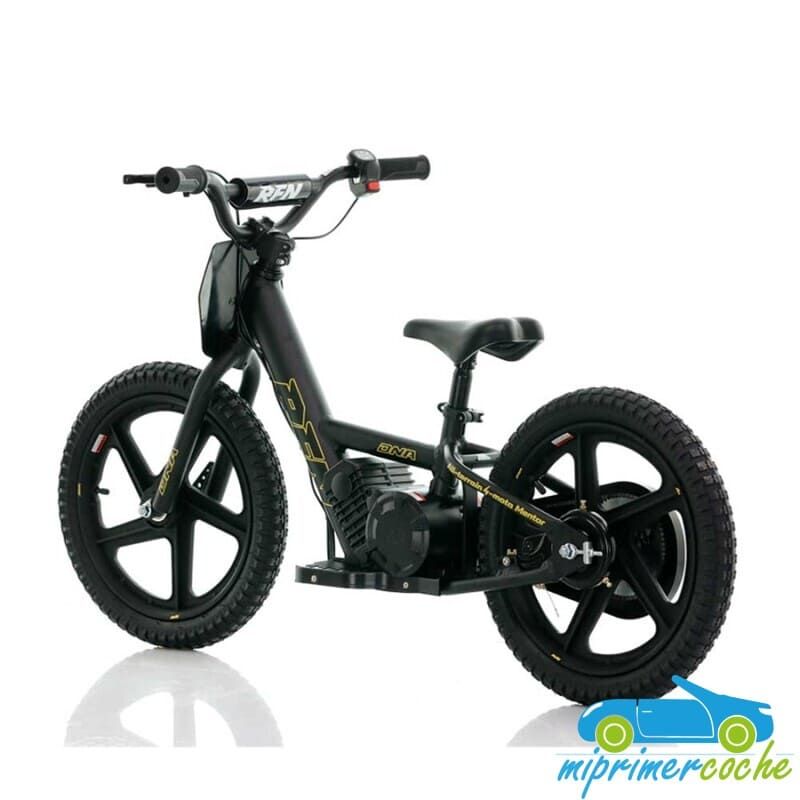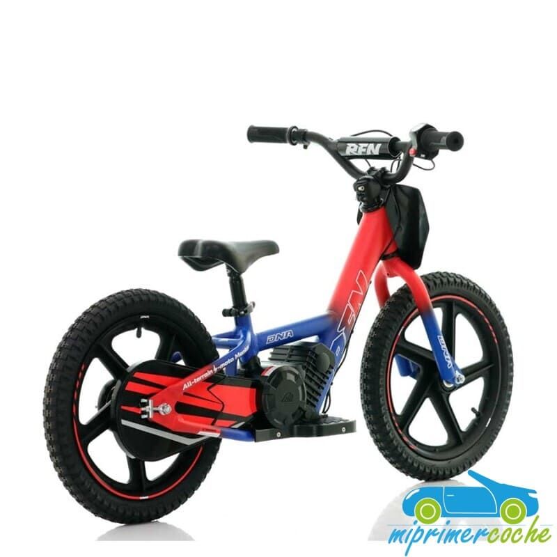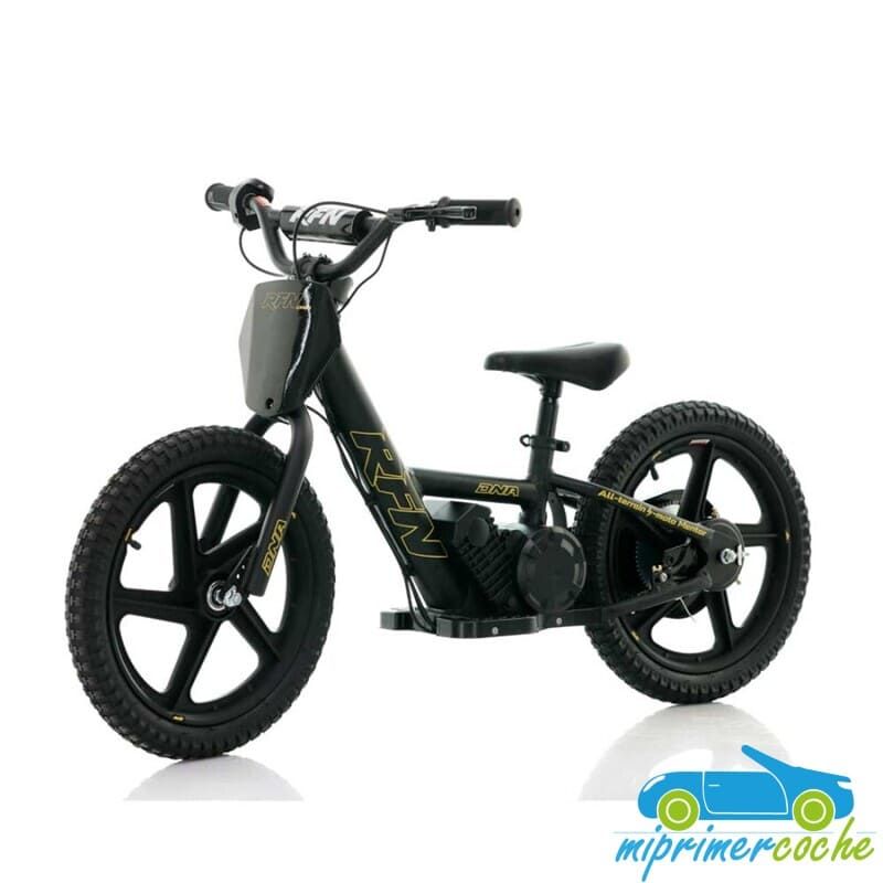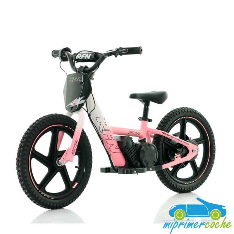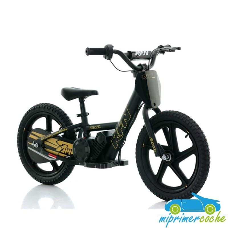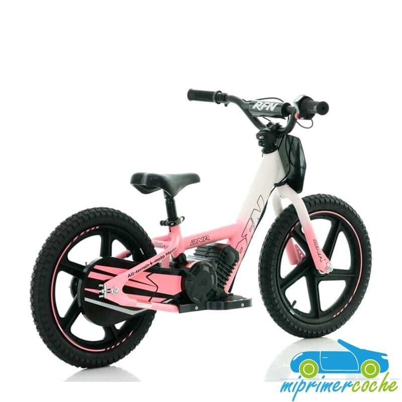 La Bicicleta Eléctrica para niños RFN de 16 pulgadas es el modelo de equilibradores eléctricos que funcionan sobre la base de una bicicleta, solo que sin pedales, con accionamiento puramente eléctrico controlado a través del acelerador en el manillar. Este tipo de vehículo se beneficia de los últimos avances que ofrece el mercado con la batería de litio. Es realmente fácil de controlar y muy complejo, ideal para el desarrollo de las capacidades físicas de los niños de 4 a 7 años más o menos .