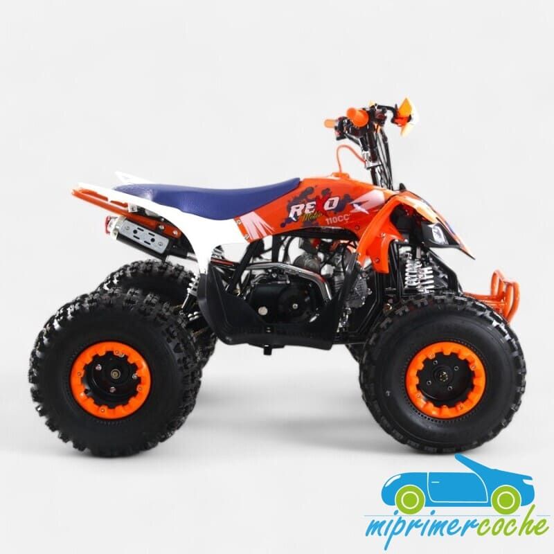 Quad REXO 110cc 4T automático con marcha atrás, arranque eléctrico y limitador de velocidad. Seguro, resistente y fácil de conducir, ideal para iniciación off-road infantil.