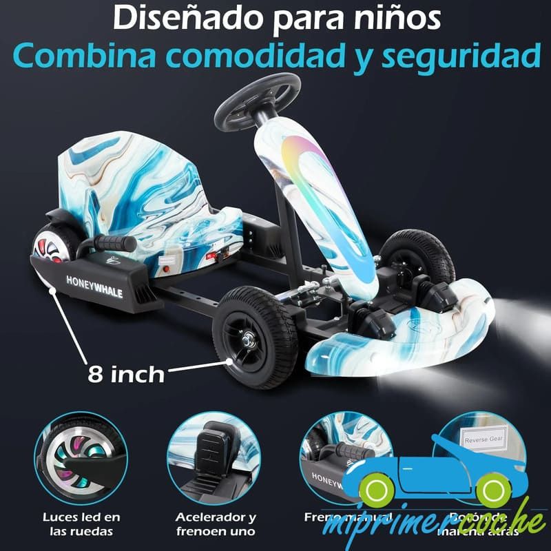 El kart eléctrico JL009, con motor 250W brushless y batería de litio 36V, es ideal para niños de 3 a 6 años. Cuenta con luces LED, 3 velocidades ajustables y conectividad Bluetooth, ofreciendo diversión segura y emocionante al aire libre. Semimontado y disponible en 5 colores.