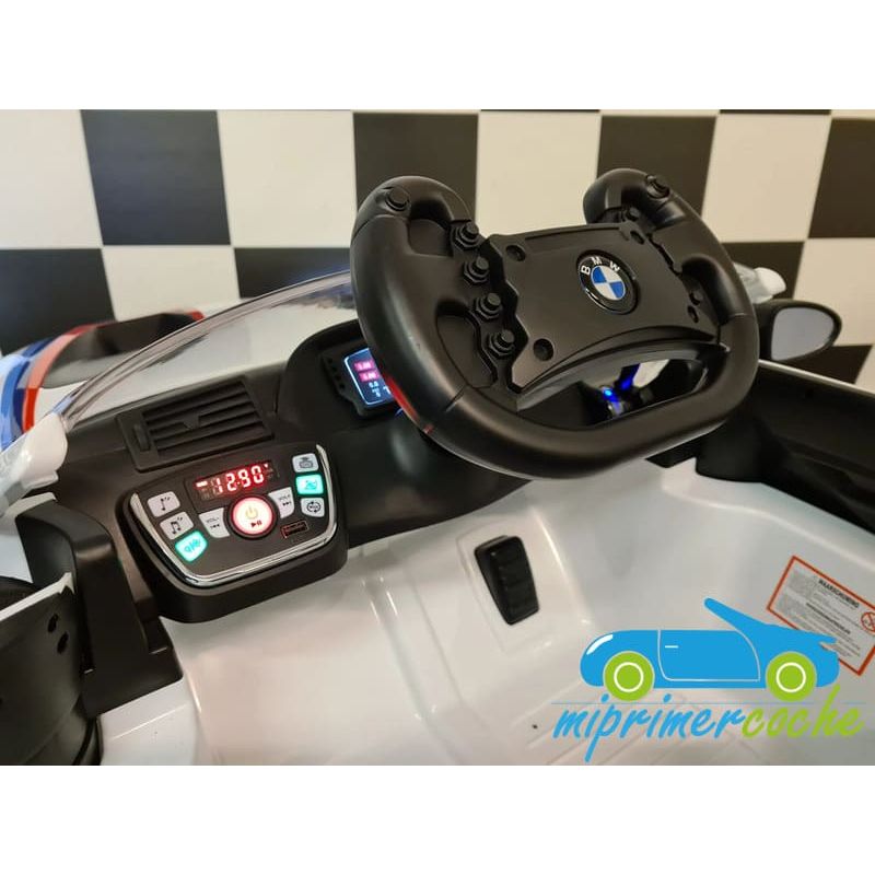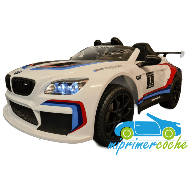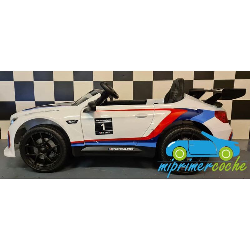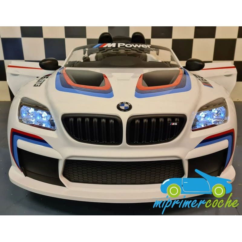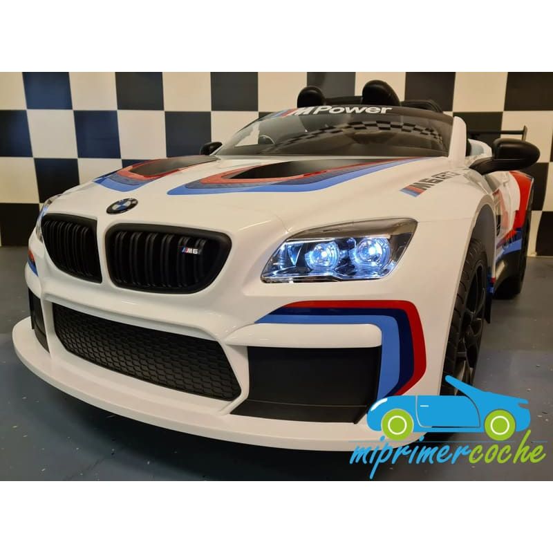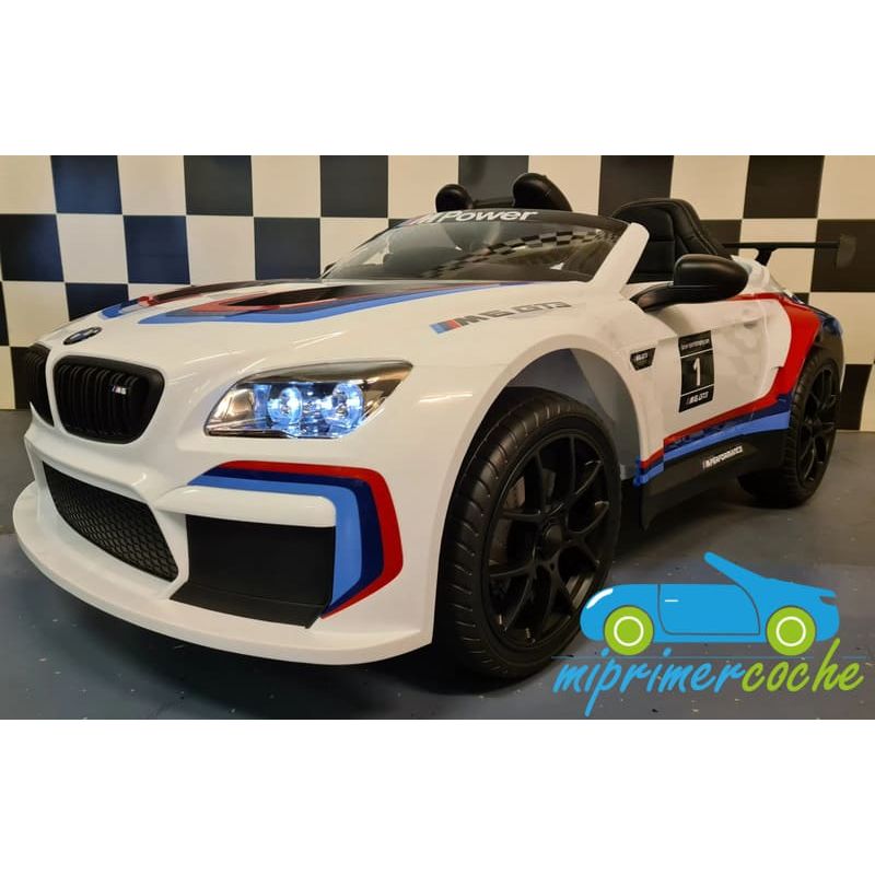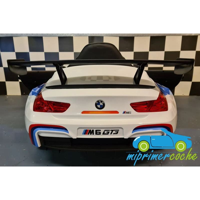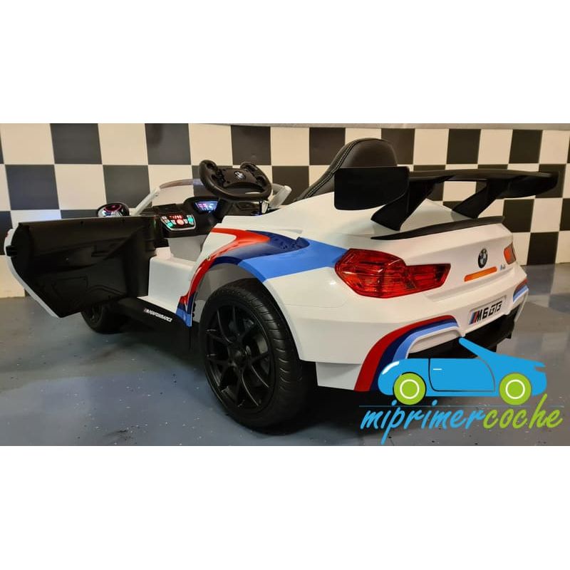BMW M6 GT3 , un vehículo de 1 plaza con Licencia Oficial , equipado con 2 potentes motores de12v , ruedas de caucho , equipo de música , asiento acolchado en polipiel , aperturas de ambas puertas y mando parental 2.4G con botón de paro de emergencia , batería 12v ...es un fantástico coche eléctrico para niños .