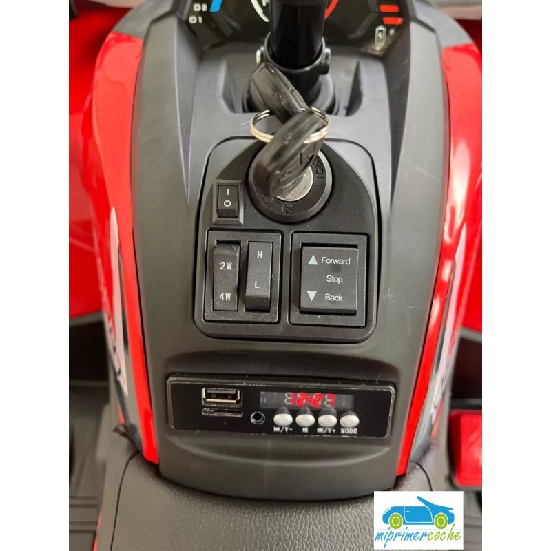 - el quad puede ser controlado por el padre gracias al mando distancia 2.4G con funciones de marcha hacia delante / atrás , girar izquierda / derecha , selector de velocidades y botón de paro de emergencia .