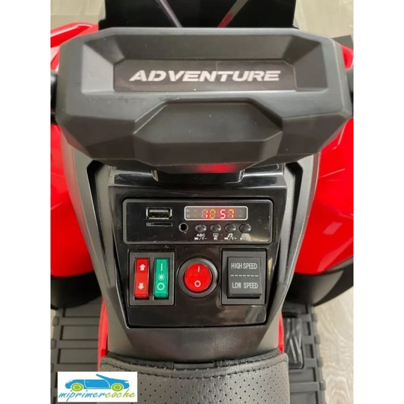 De nuevo MiPrimerCoche sorprende con este modelo de quad eléctrico para niños ATR 12V con mando parental, equipado con dos potentes motores de 45W , suspensión a las ruedas , conector USB , MP3 , tarjeta SD etc.
