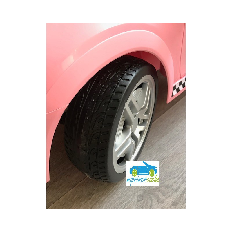 Este coche eléctrico para niños de la alta GAMA de MINI las ruedas están recubiertas con caucho antipinchazos que son mas silenciosas y duran mas .Viene equipado con un mando radiocontrol 2.4G.