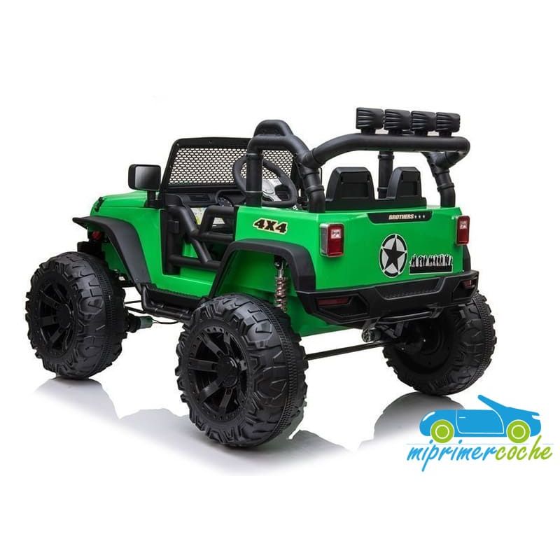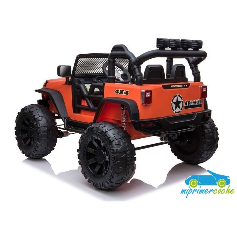 Un todoterreno que puede con todo , con 2 motores 200w , ruedas de caucho , lo que le permite ir por todos los terrenos y capaz de soportar hasta 60 kilos .Equipado también con asiento muy espacioso acolchado en polipiel , es un coche de grandes dimensiones .